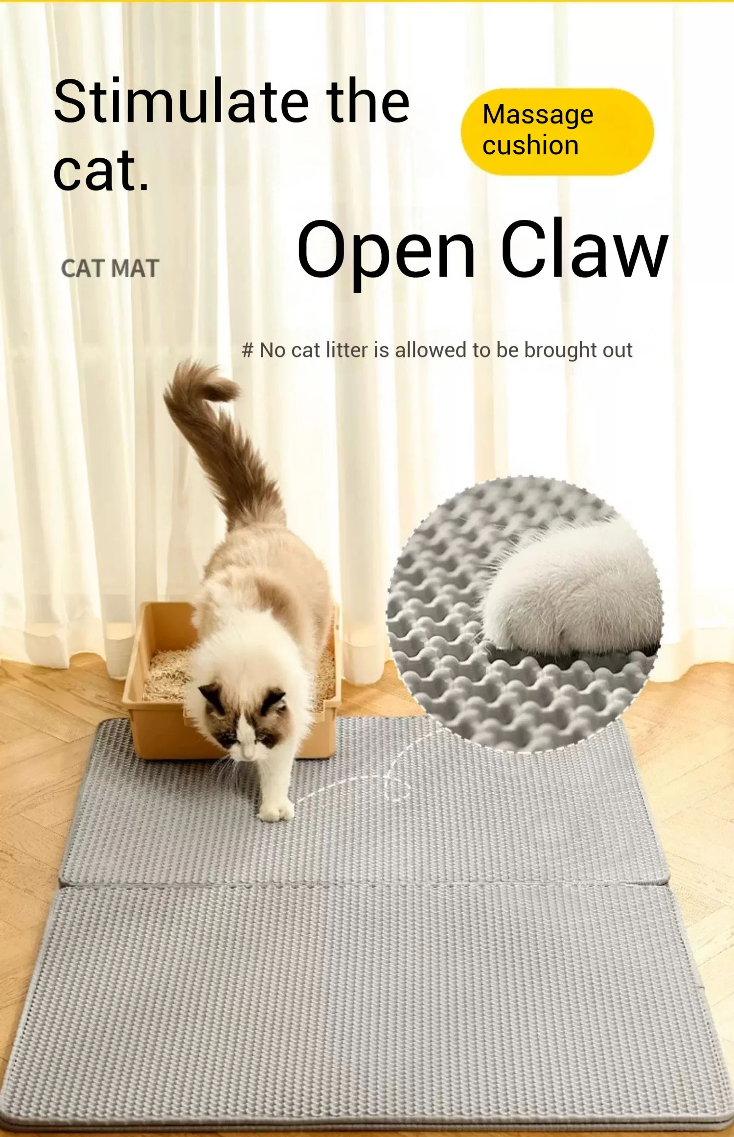 Almohadilla para arena lavable para gatos: hecha de material EVA suave, duradero y lavable, que puede eliminar fácilmente la suciedad.