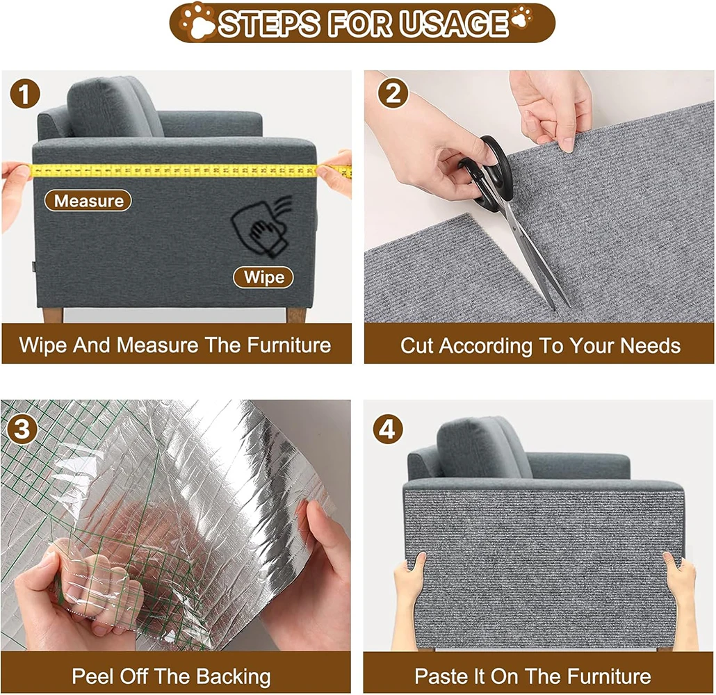 Estera autoadhesiva para rascar gatos, Protector de sofá, alfombra para gatos, tablero para rascar, protección de pared de esquina, alfombrilla para rascar para gatos DIY recortable