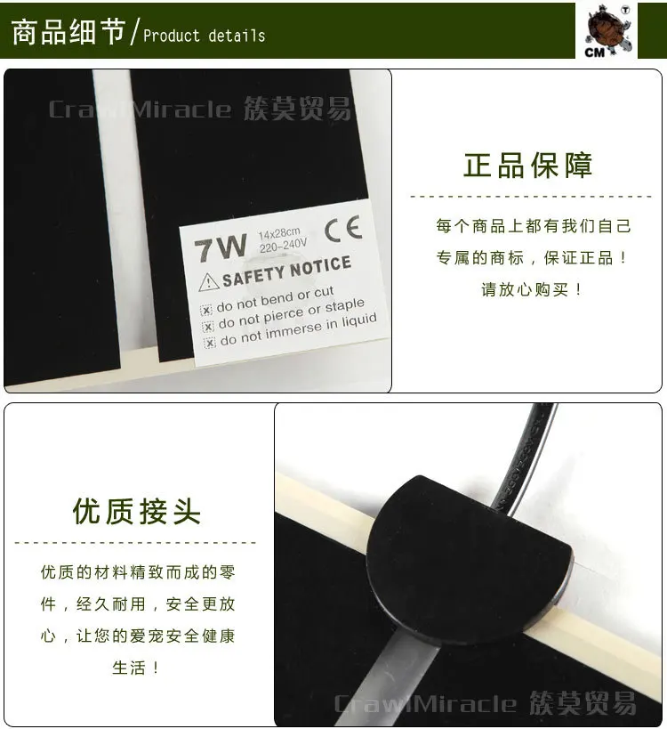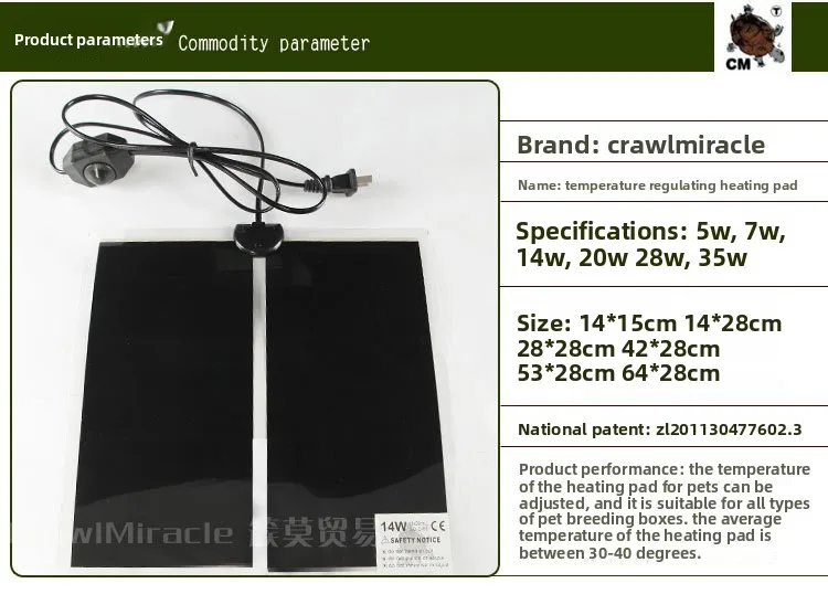 CM adjustable temperature heating pad can heat the palace, pet snakes, horned frogs, spiders and insects. The surface temperature can reach 32 degrees. You need to do a good job of heat preservation to heat it effectively. For very low indoor temperatures, use as many price heating pads as possible or use ceramic lamps to heat it up.