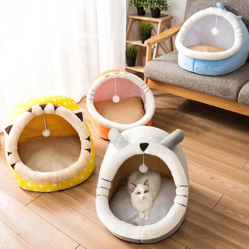 Estera semicerrada para cama para gatos, tienda cálida de invierno para casa de gatos, cesta suave para perros pequeños, acogedor cojín para tumbona de gatito, camas de cueva para gatos