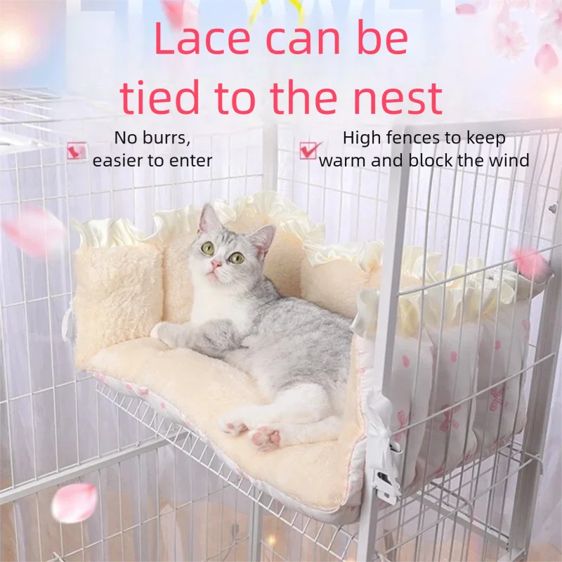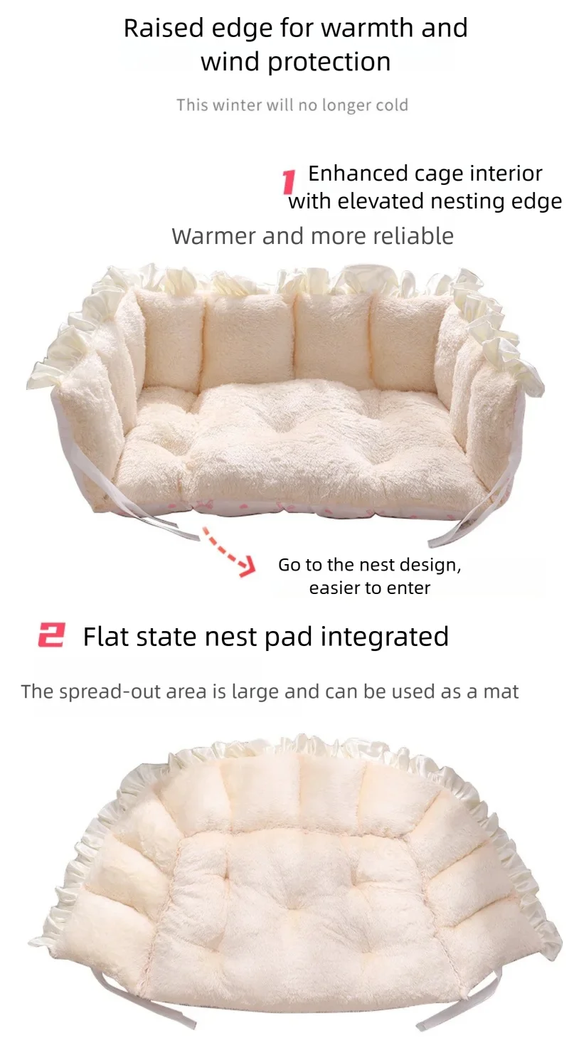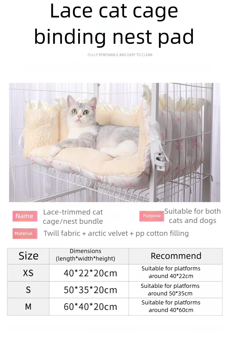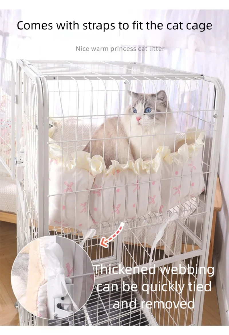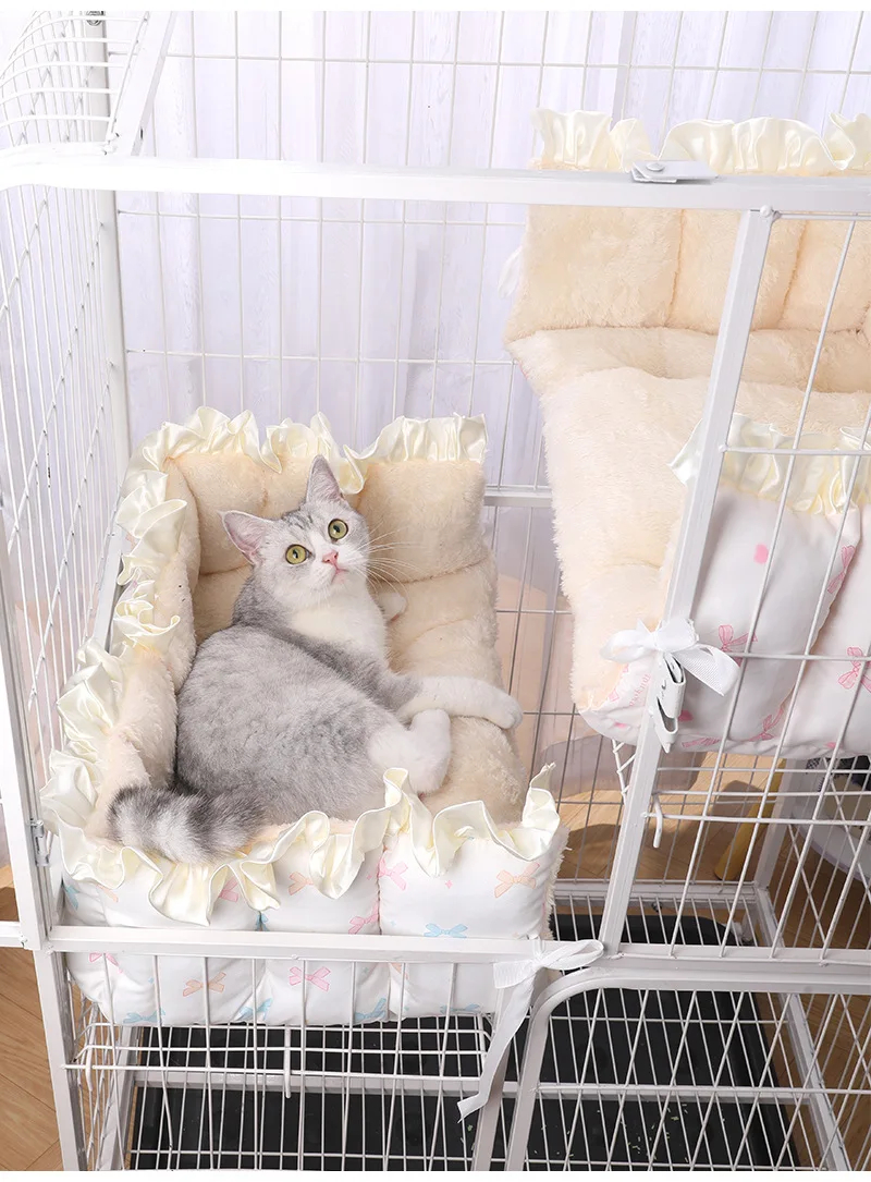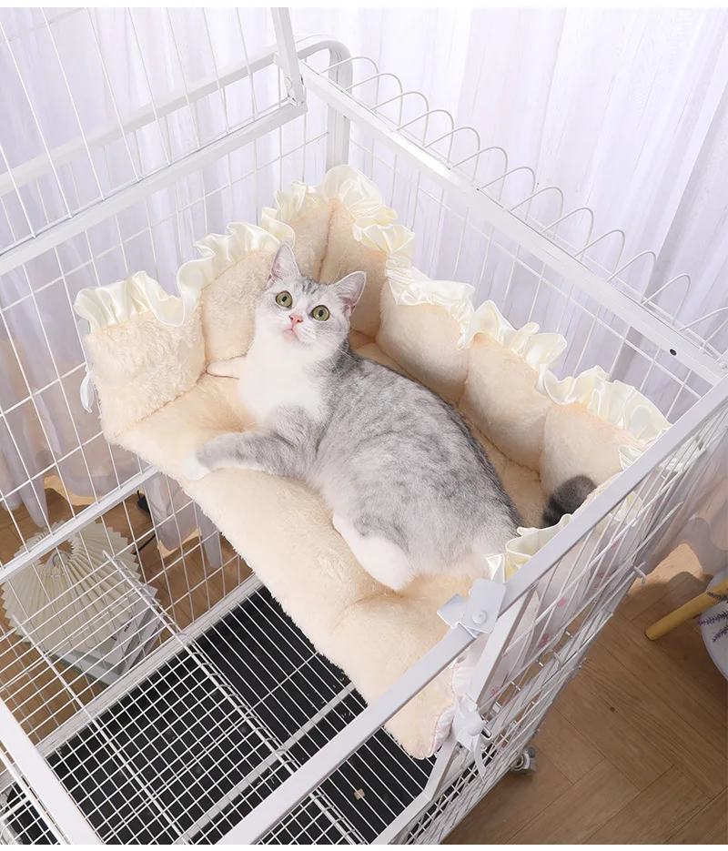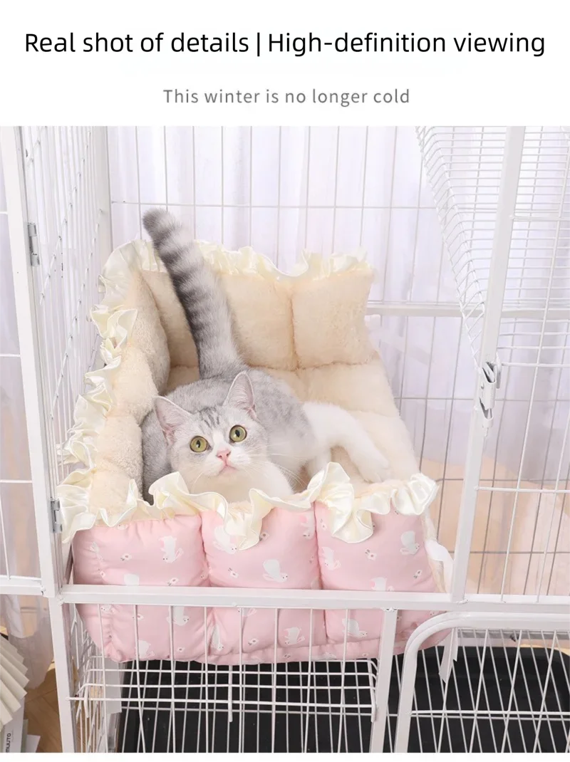 Winter Warm Cat Cage Mat with Tie Straps Plush Thickened Pet Bed Pad Removable Cover for Kittens Small Dogs House Indoor Use