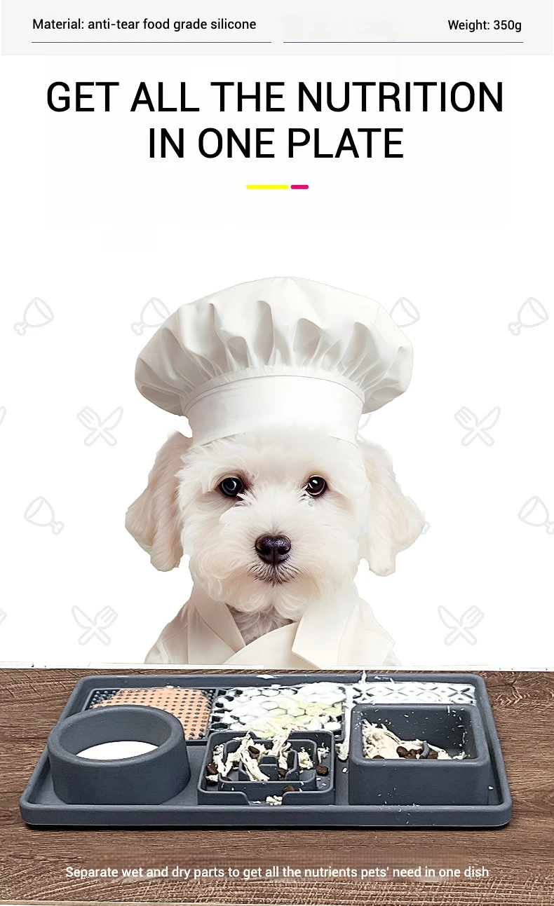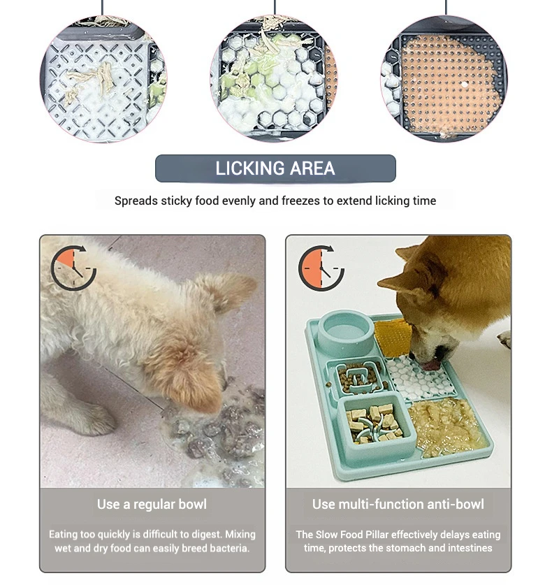 Con un diseño de 4 secciones, este tapete es ideal para servir varios tipos de alimentos, incluidas croquetas secas, pasta de carne y refrigerios.Puede mezclar y combinar para brindarle a su mascota una experiencia de alimentación divertida y enriquecedora.
