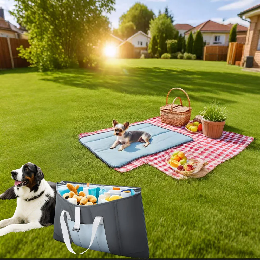 Alfombra y bolsa transportadora para mascotas 2 en 1, diseño plegable para uso en exteriores, adecuada para perros pequeños, gatos y almacenamiento de suministros para mascotas durante el viaje