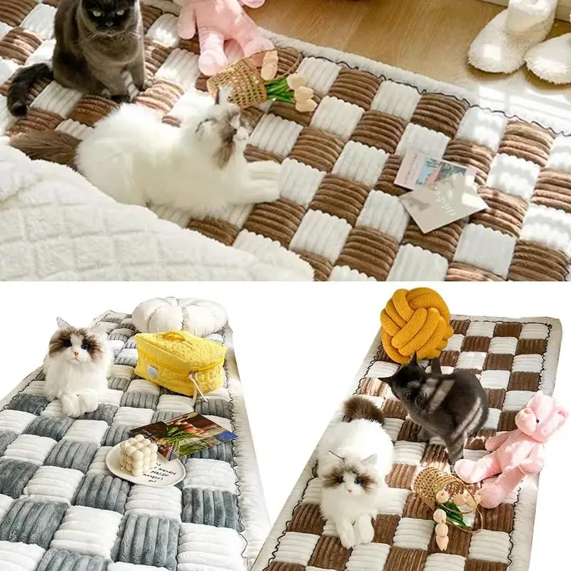 Alfombrilla multiusos para mascotas para sofá y coche, diseño grueso y esponjoso a cuadros, ventana de bahía/almohadilla cómoda para el suelo, forro suave para todas las estaciones para mascotas