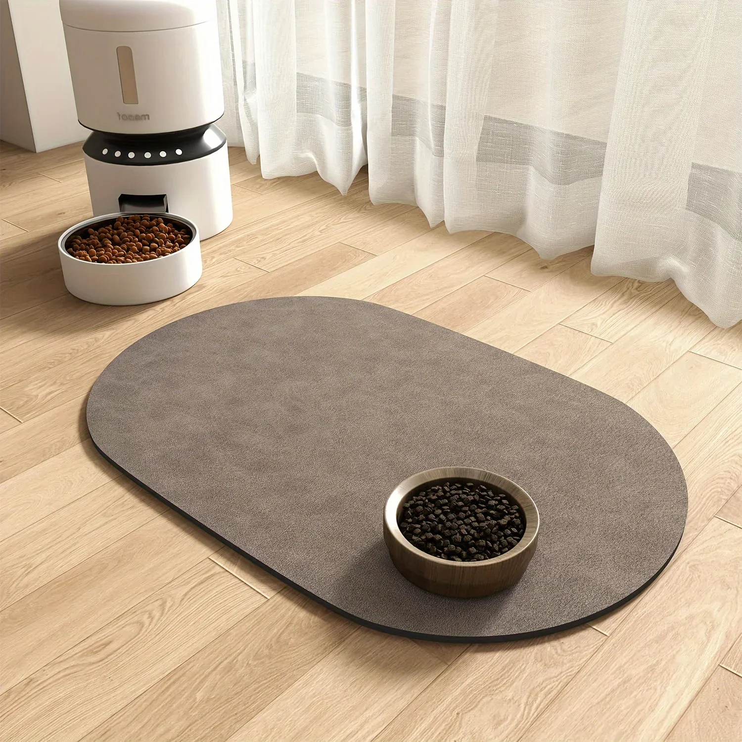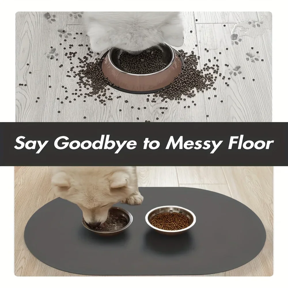 Estera ovalada de Color sólido para mascotas, almohadilla absorbente para alimentos, antideslizante, de secado rápido, para perros y gatos, suministros para habitación del hogar, 1 ud.