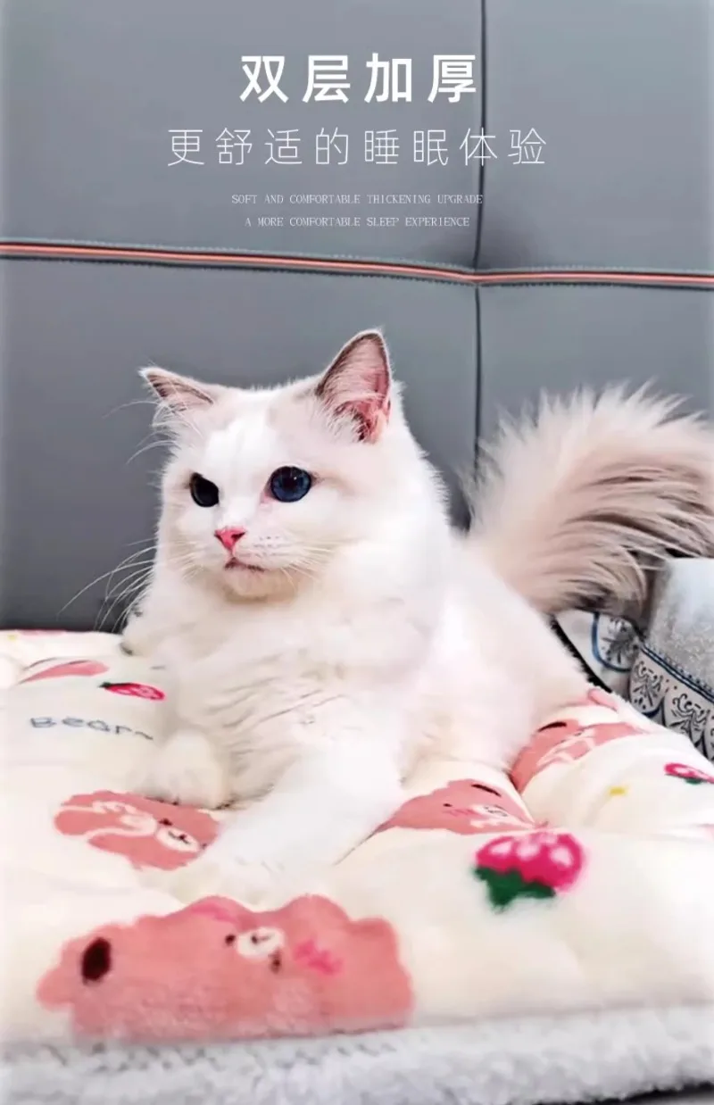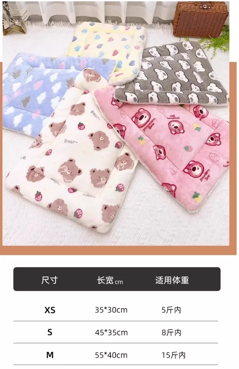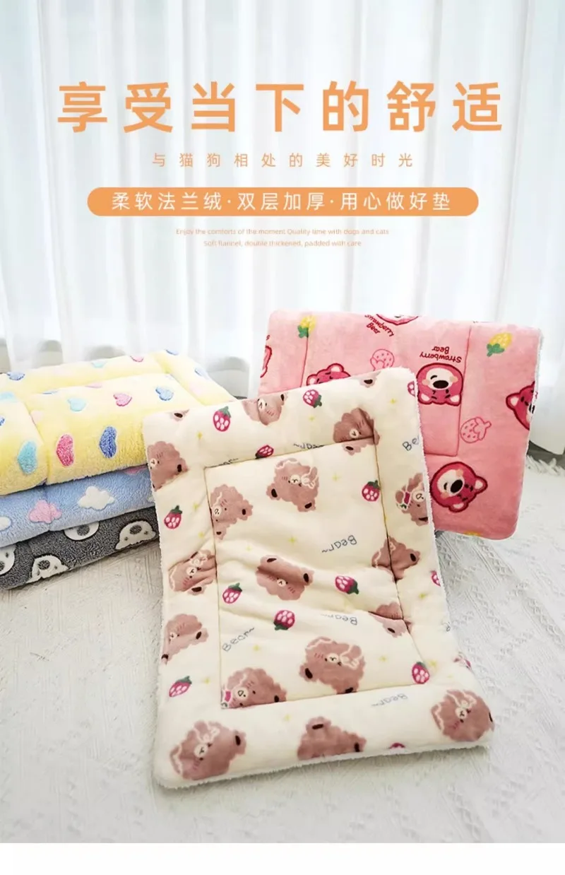 Pet pad autumn and winter thickened warm blanket wool lamb double-sided velvet cartoon cat dog sleeping pad