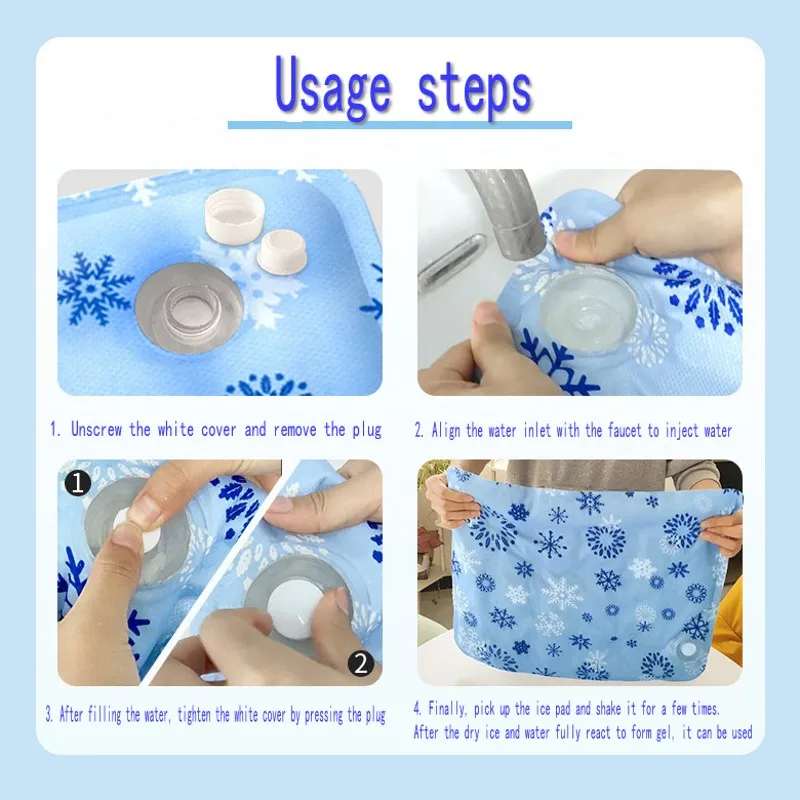 4. Finalmente, recoja la almohadilla de hielo y agítela unas cuantas veces, después de que el hielo seco y el agua reaccionen completamente para formar gel, se puede usar