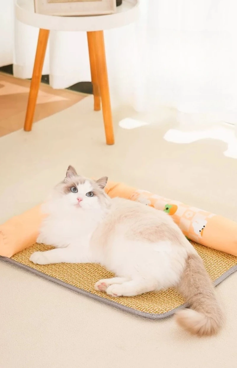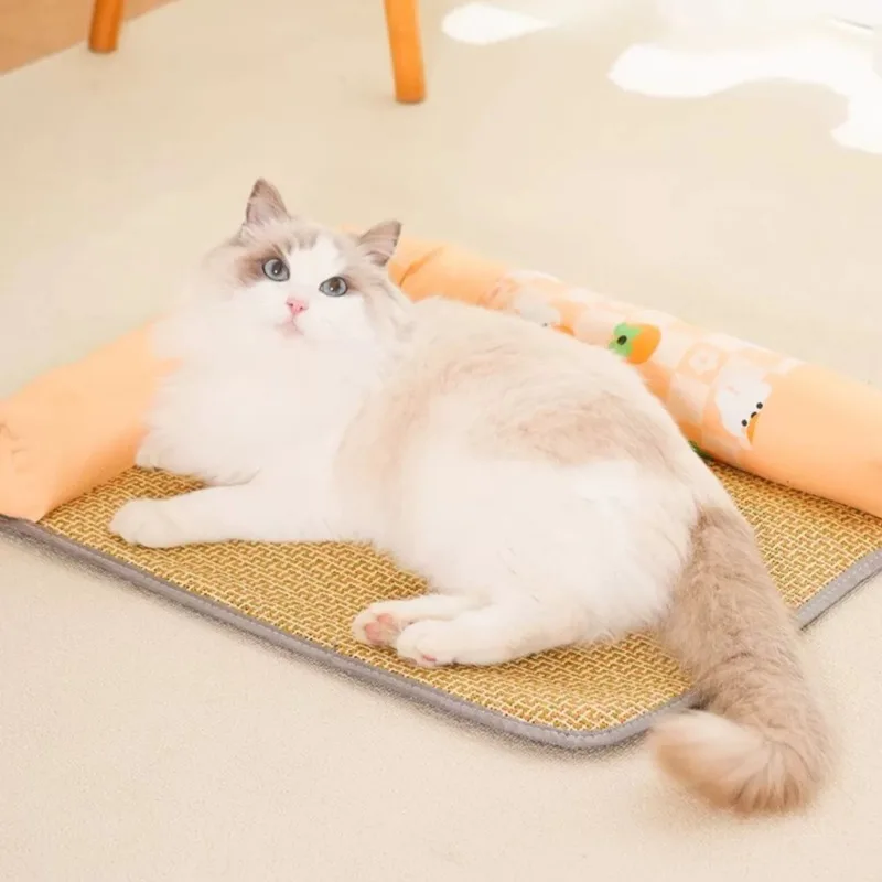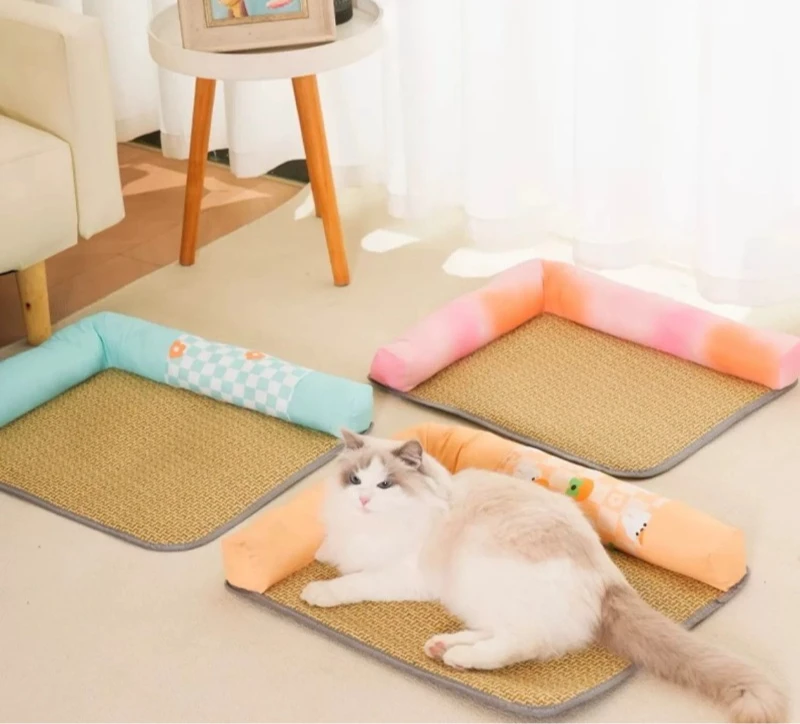 Estera refrescante transpirable de verano para mascotas, almohadilla para dormir tejida de mimbre para gatos, suministros de disipación de calor para cachorros y gatitos, estera de cama cómoda para perros