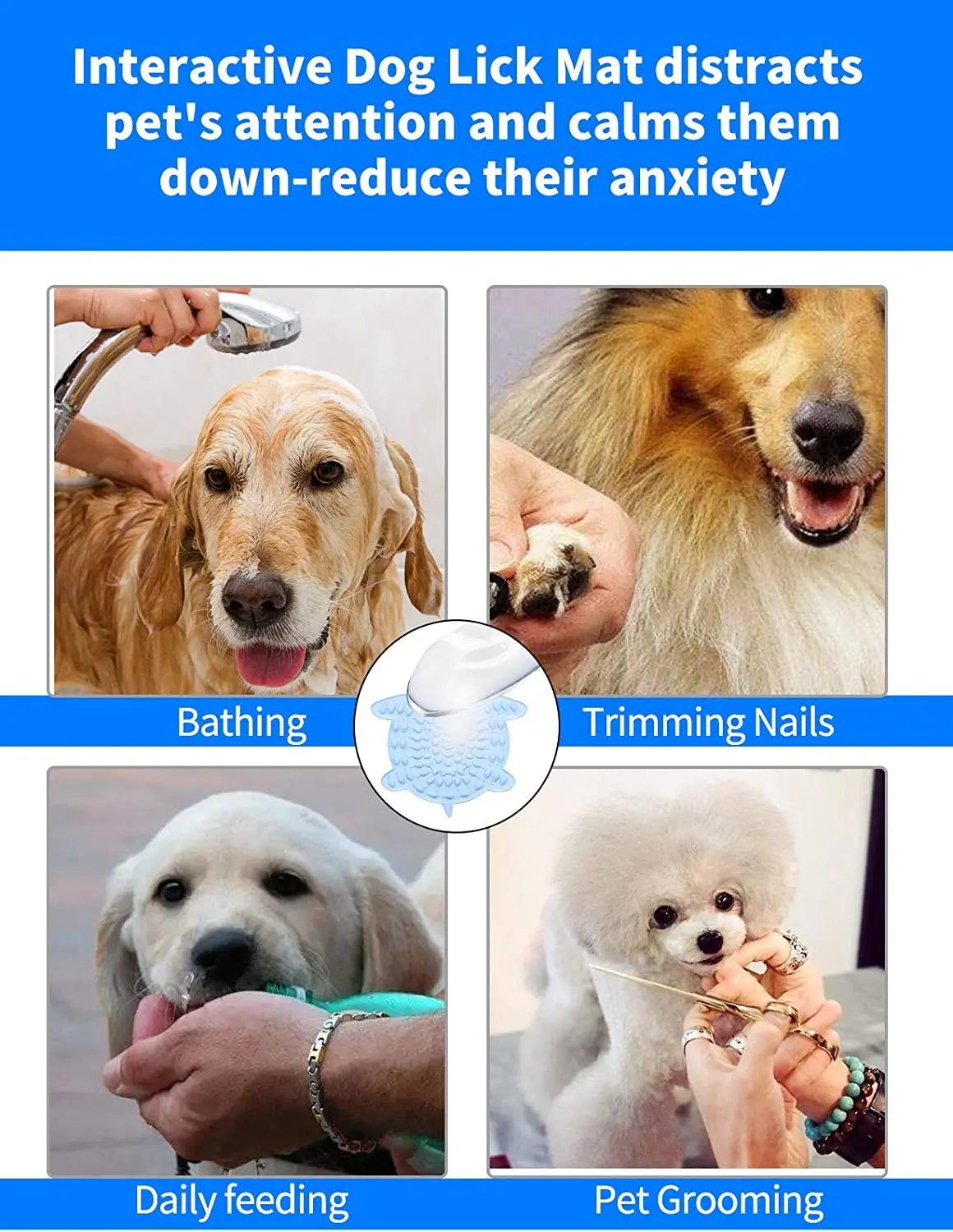 Estera de silicona para lamer para perros y gatos, alimentador lento con base de succión, herramienta portátil de entrenamiento de alimentos para aliviar la ansiedad y alimentación consciente