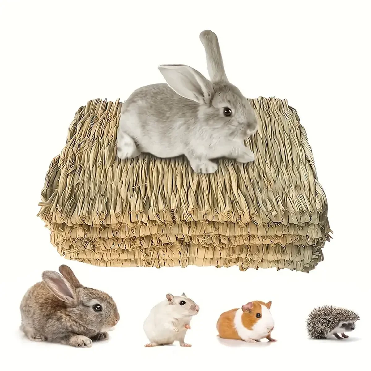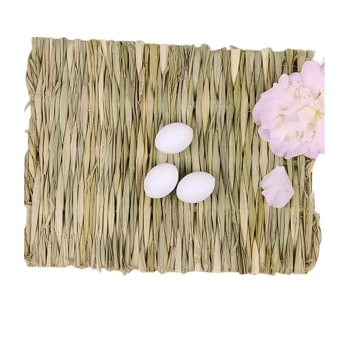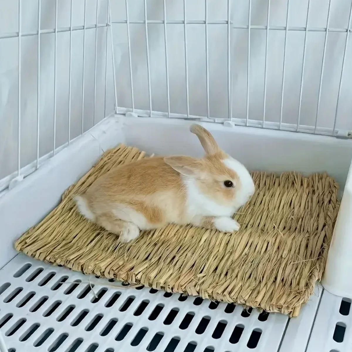 Estera de hierba de conejo tejida de hierba natural adecuada para jaulas de animales pequeños: ropa de cama cómoda adecuada para camas de heno de conejo y colchonetas para dormir