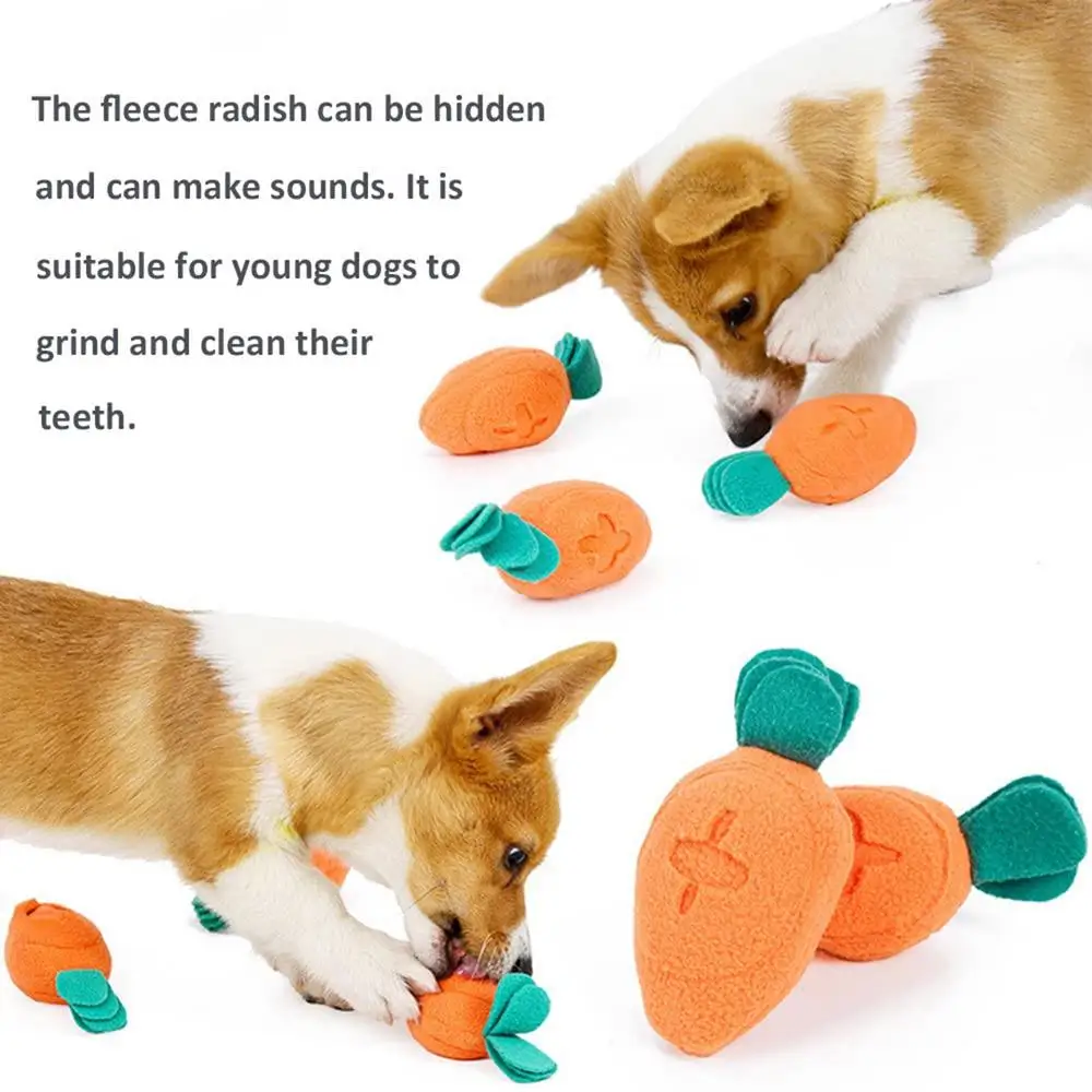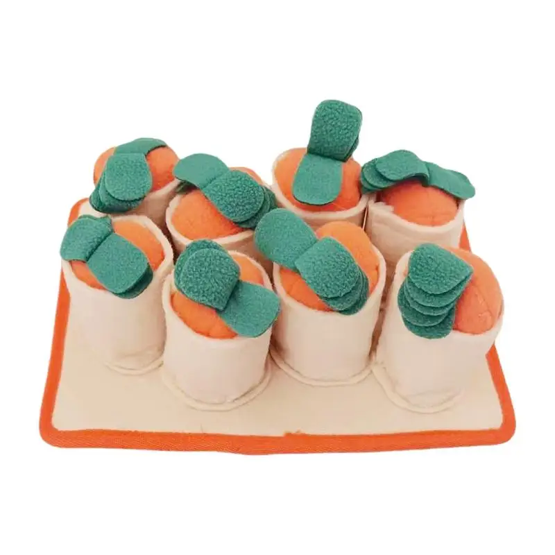 4.Juguetes divertidos: utilice los 8 juguetes de zanahoria de peluche para involucrar a las mascotas en divertidos juegos de aperitivos para esconder y buscar, fomentando la agudeza mental y la curiosidad para disfrutar duradero.