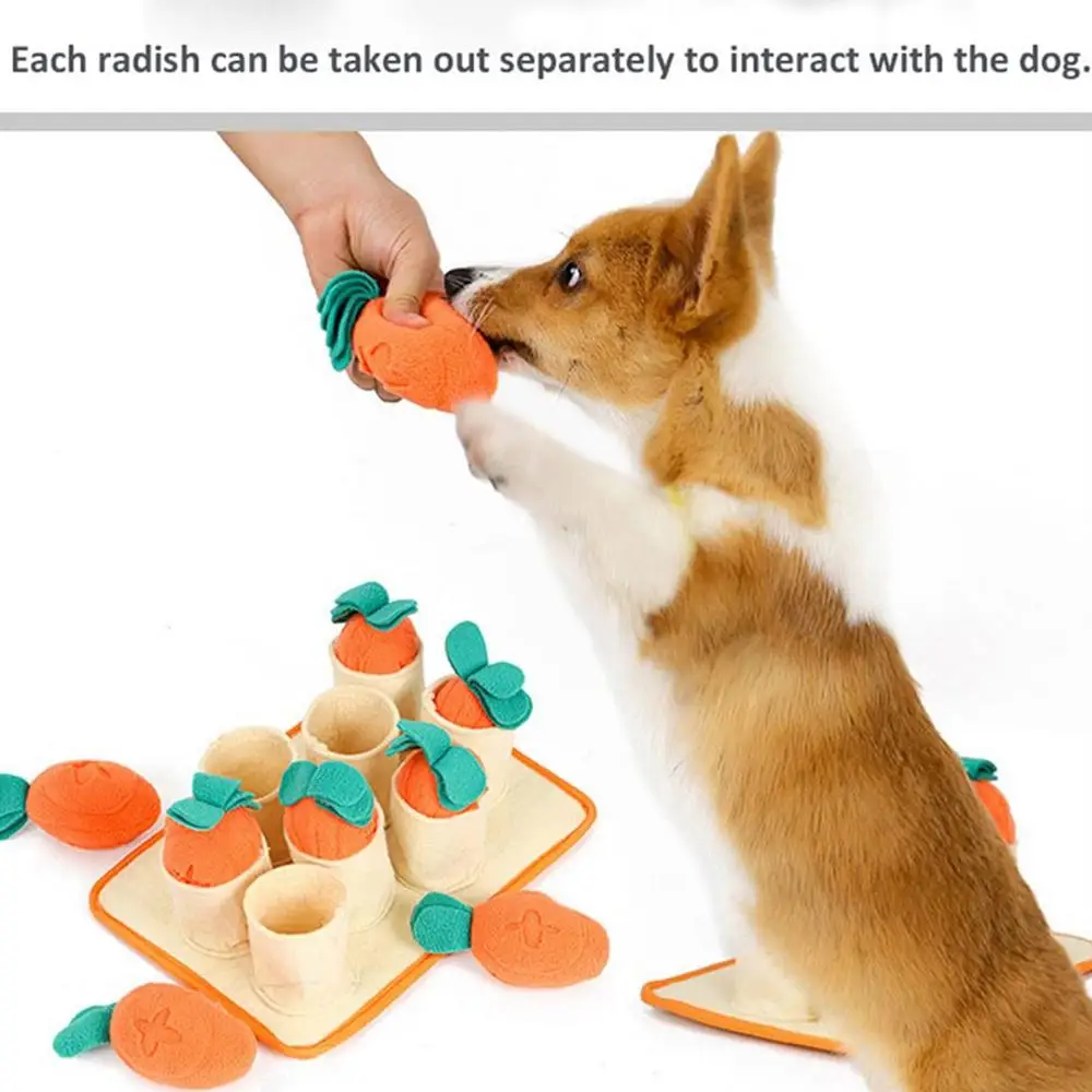 3.Juegos de inteligencia: involucra a las mascotas en juegos interactivos que desafían su capacidad para extraer zanahorias de peluche a través del olfatio y el pensamiento estratégico, mejorando su desarrollo cognitivo.