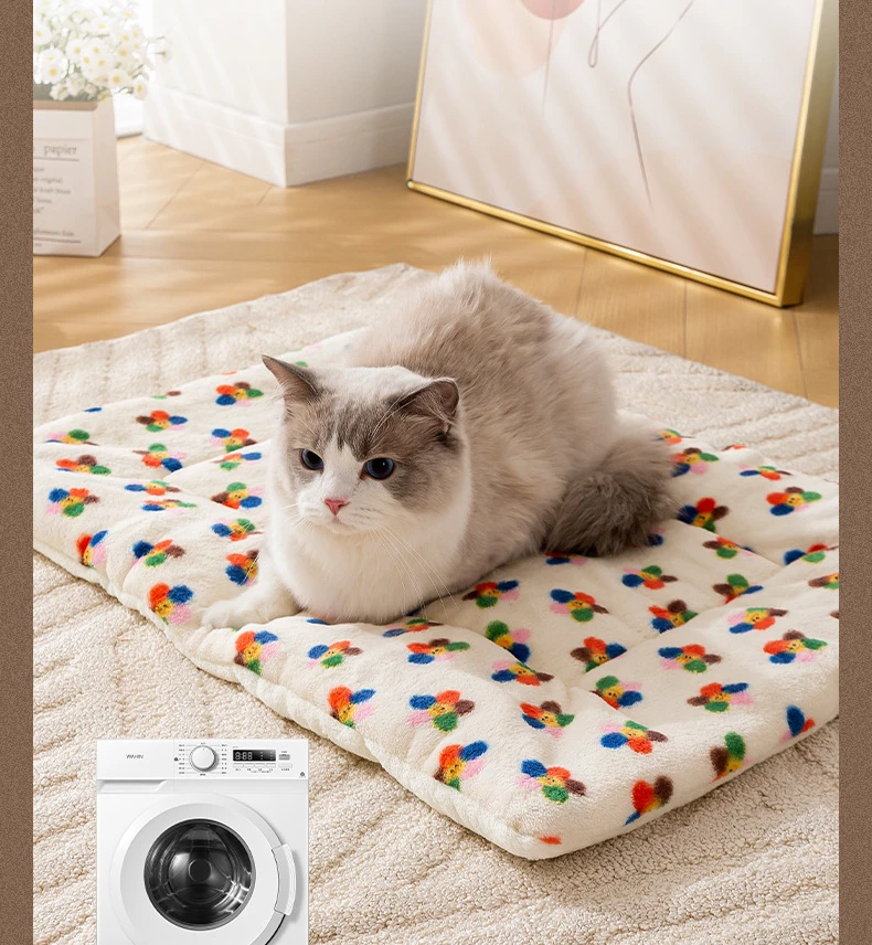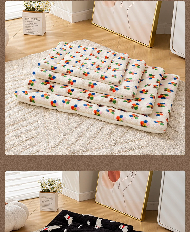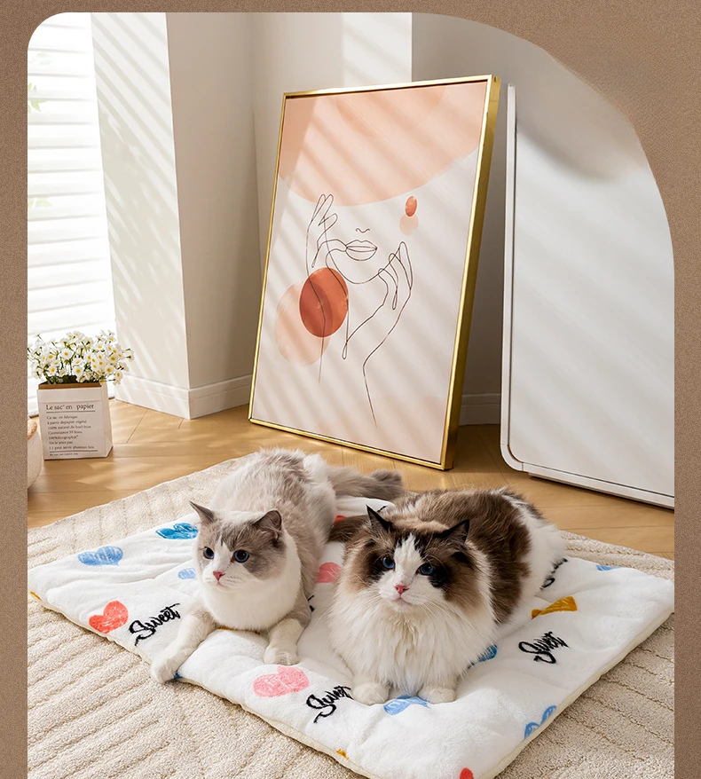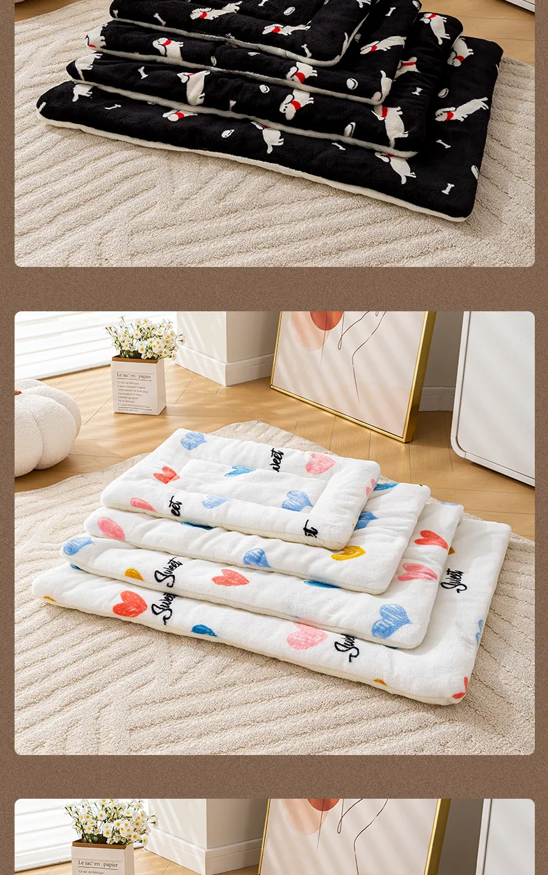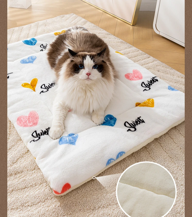 Esteras de cama cálidas de lana Coral para mascotas, almohadillas para dormir con estampado bonito para gatos, manta de nido suave para perros, cojín para gatitos para el hogar, suministros para cachorros