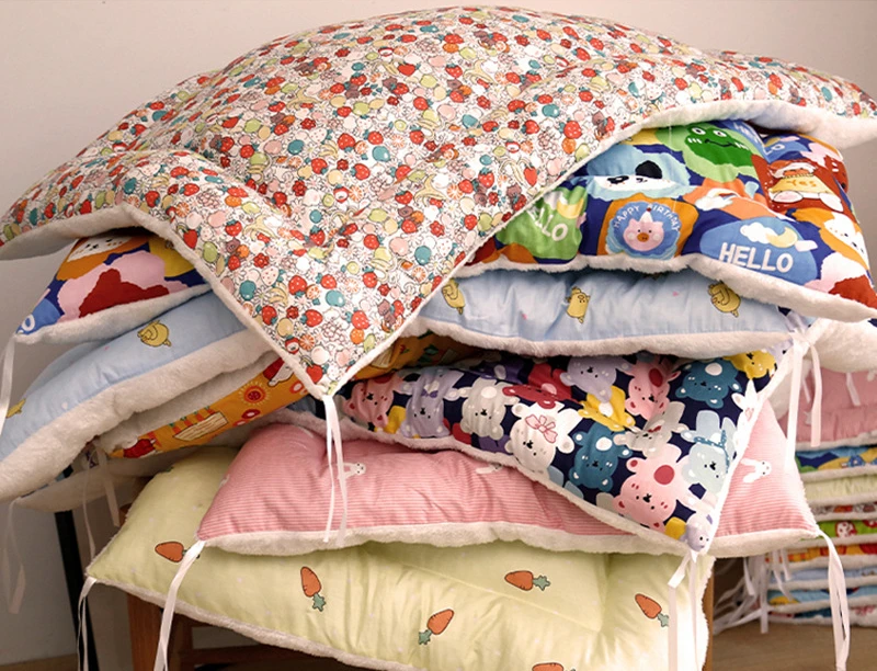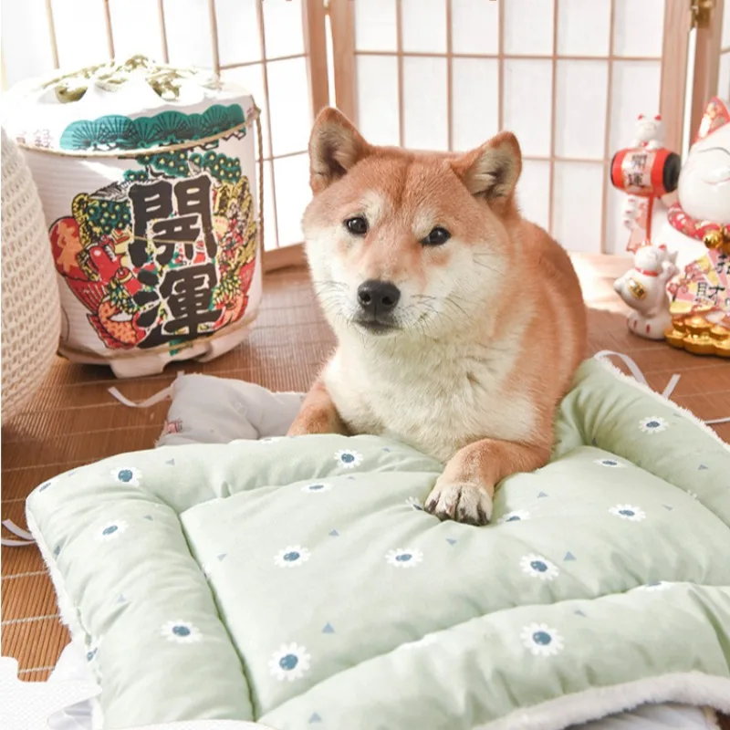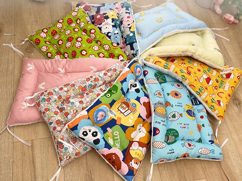 Esteras de cama cálidas de lana para mascotas, jaula para perros y gatos, almohadillas de nido suaves con estampado bonito y fijación de correa, almohadilla para dormir para viajes al aire libre, invierno