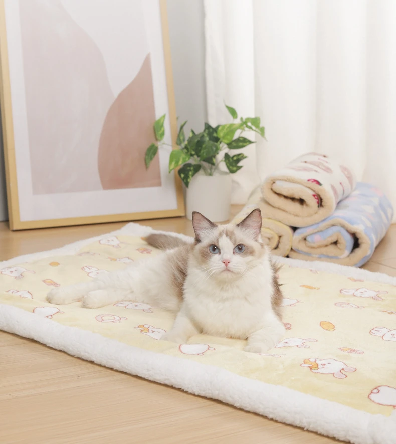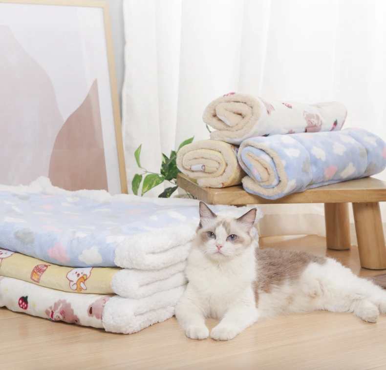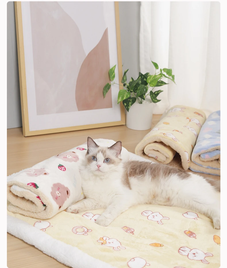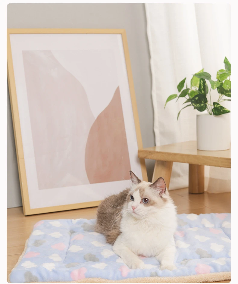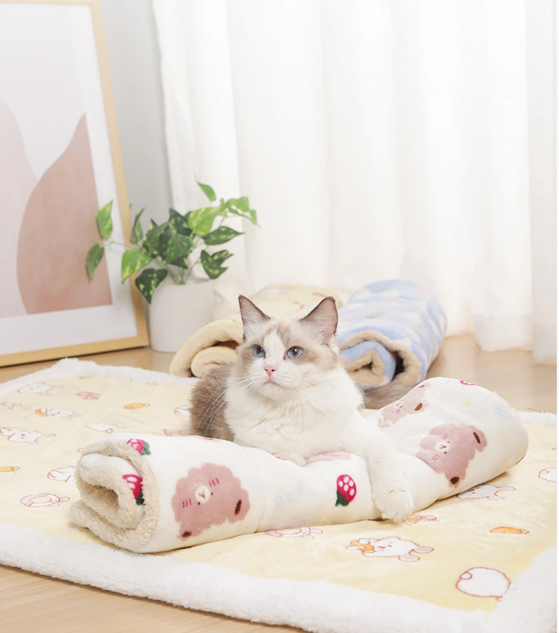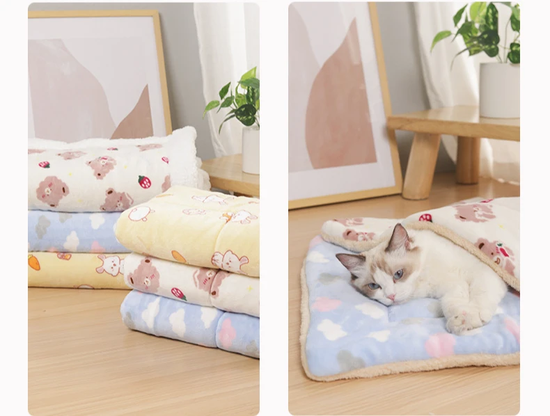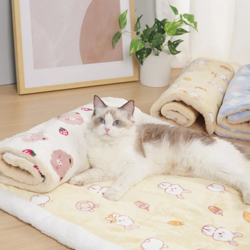 Esteras de cama suaves y cálidas de lana para mascotas, manta nido para gatos, almohadillas para dormir con estampado bonito para perros, cojín para viajes al aire libre, suministros para cachorros, invierno