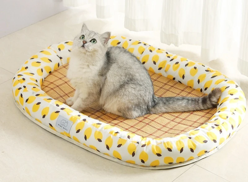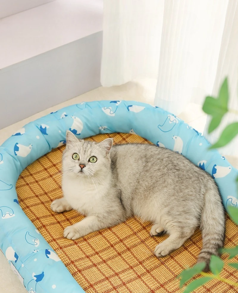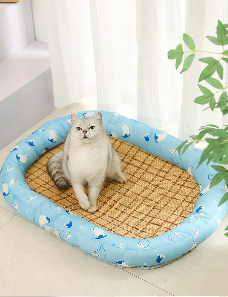 Esteras refrescantes tejidas de mimbre para gatos, almohadilla para dormir transpirable de verano, suministros de disipación de calor para cachorros y gatitos, estera de cama suave para perros