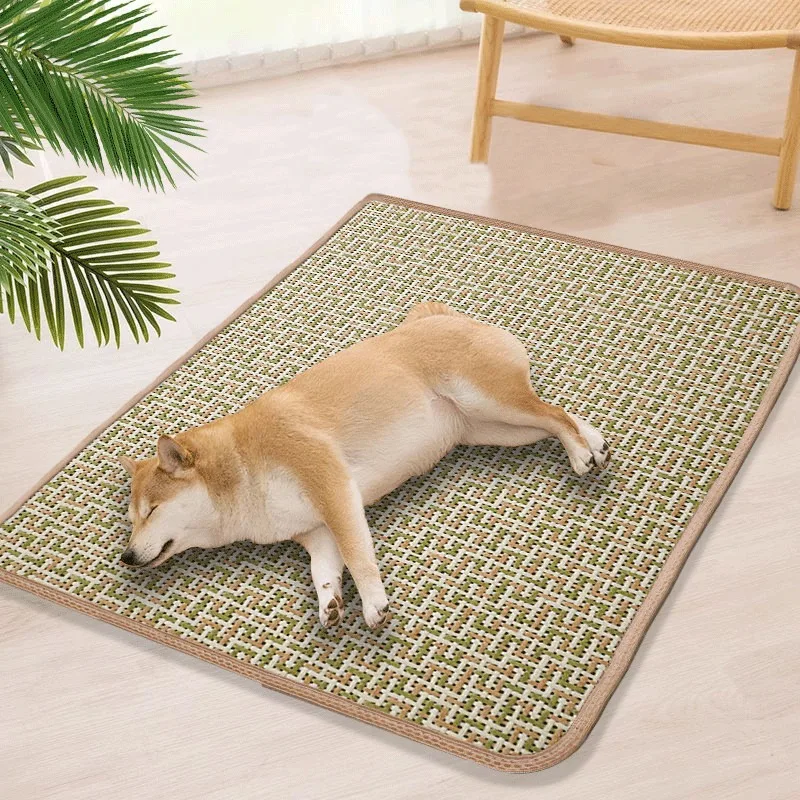 Esteras refrescantes transpirables para mascotas, almohadillas para dormir suaves y cómodas para perros, estera de cama tejida de ratán para gatos, suministros de disipación de calor para cachorros y gatitos