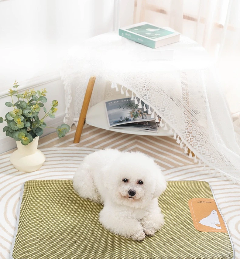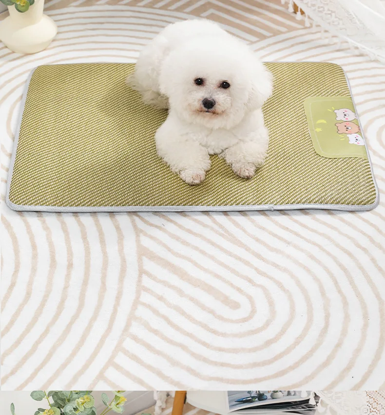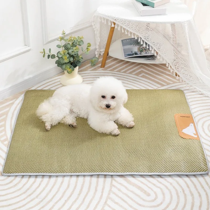 Esteras refrescantes transpirables para mascotas, almohadillas para dormir tejidas de mimbre para perros, suministros de disipación de calor para cachorros y gatitos, estera de cama suave para gatos