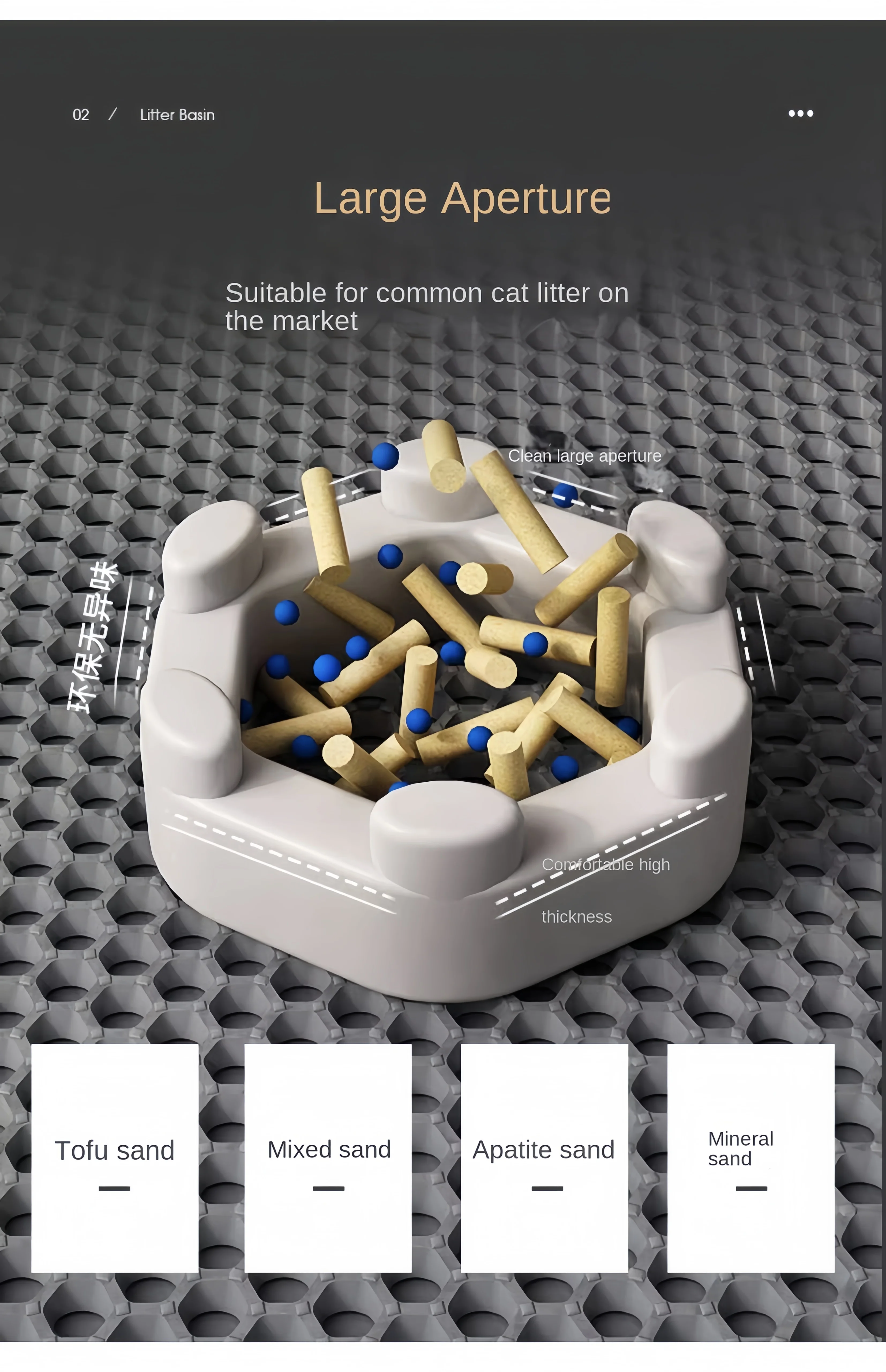 • Base antideslizante:La base antideslizante de la almohadilla de arena evita deslizamientos accidentales, garantizando la seguridad de sus mascotas y su suelo.