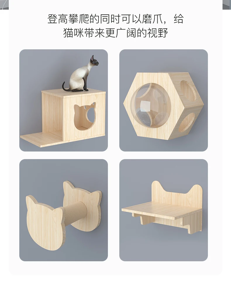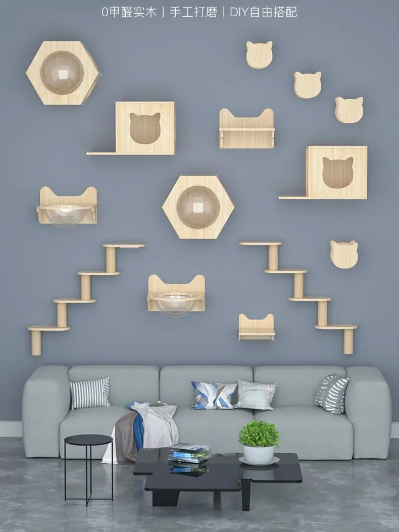 La estructura de escalada para gatos montada en pared representa la solución definitiva para dueños responsables que buscan maximizar el espacio vertical y proporcionar entretenimiento natural a sus felinos. Este innovador sistema de escalera de madera maciza está diseñado con material de alta calidad que garantiza durabilidad y seguridad mientras el diseño montado en pared optimiza el espacio disponible sin ocupar suelo. La plataforma de salto y nido proporciona confort y seguridad, y el poste rascador integrado satisface instintos naturales, convirtiéndose en el accesorio esencial que transforma cualquier pared en un paraíso vertical para tu compañero, proporcionando la confianza necesaria para mantener a tu felino activo, saludable y feliz con la tranquilidad de que estás utilizando un producto que combina funcionalidad, seguridad y estética perfectamente, permitiéndote disfrutar de un felino más estimulado y contento con la tranquilidad de que estás proporcionando el mejor entorno para su bienestar.
