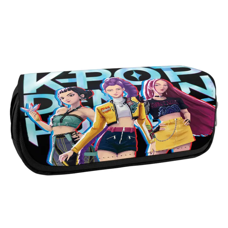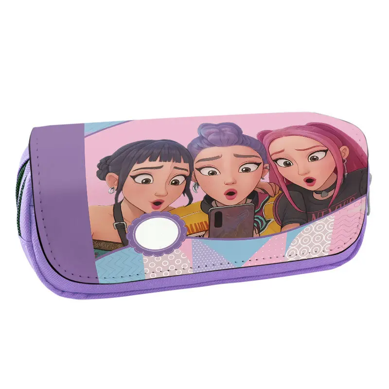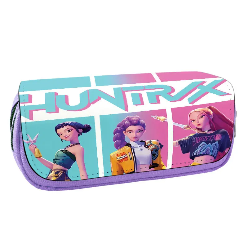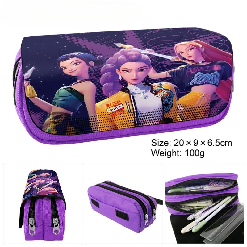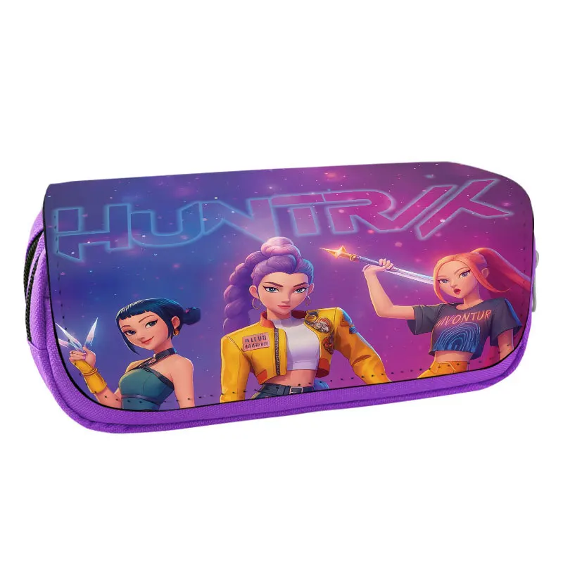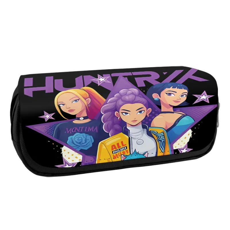 Estuche para lápices K-pops Demon Hunters, película Huntrix Lumi Mira Zoe, estuche para lápices de doble capa, caja para bolígrafos, bolsa de almacenamiento de gran capacidad para regalo