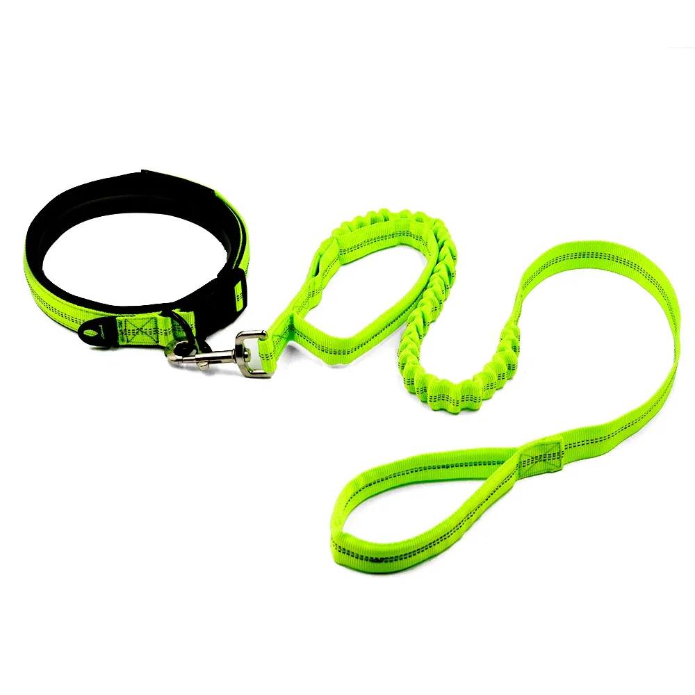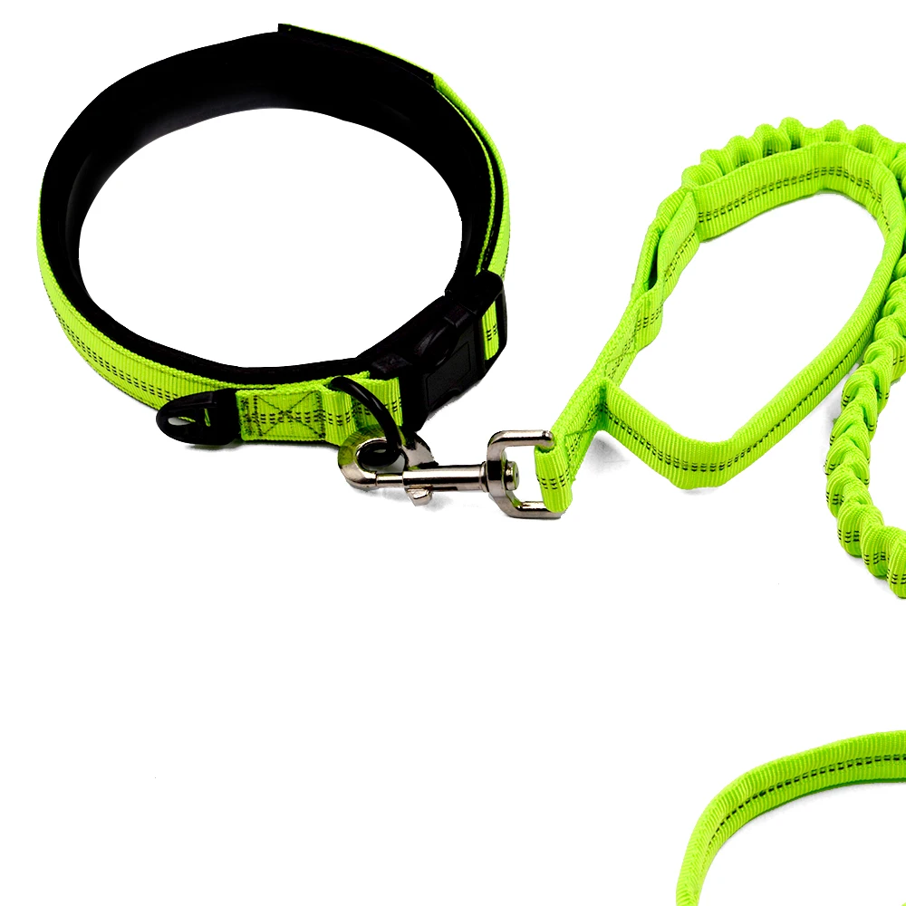 Nuevo Collar para perro ETHIN + Correa acolchada con doble asa Correa elástica para caminar para perros Entrenamiento Collar para perro de nailon reflectante con 3 collares