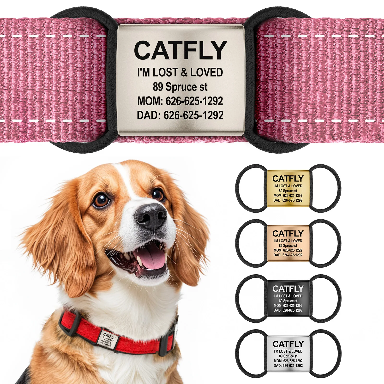 Etiqueta antipérdida de acero inoxidable, Collar para cachorro, perro y gato, etiqueta de nombre, accesorios personalizados, etiqueta de identificación de mascota, ajuste elástico