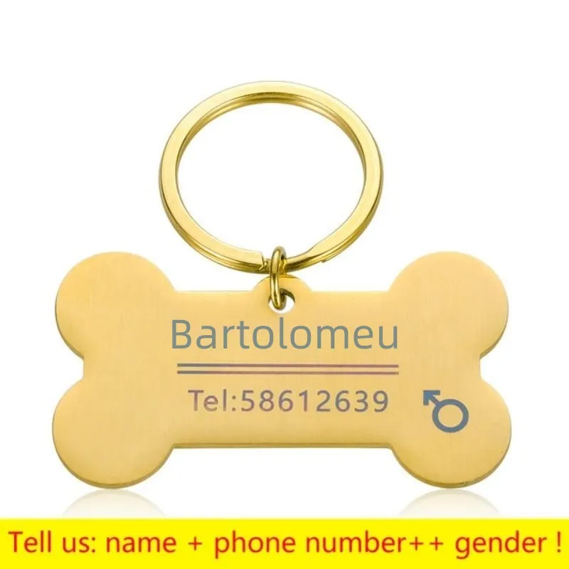 Nombre de identificación de mascota grabado personalizado, identificación de perro y gato, etiqueta antipérdida, colgante para gato, cachorro, Collar de perro, llavero, accesorios para mascotas de hueso