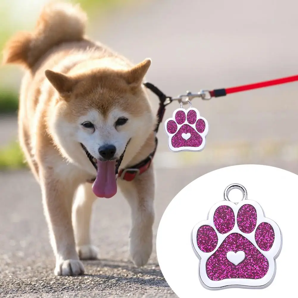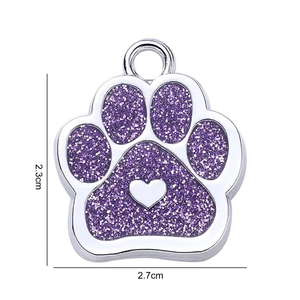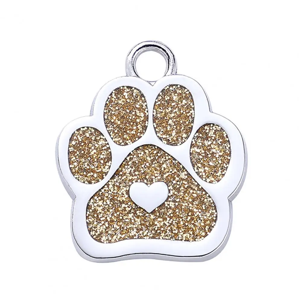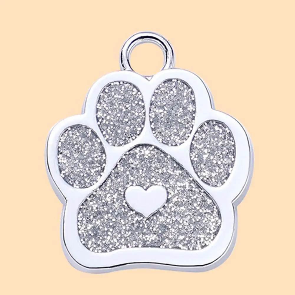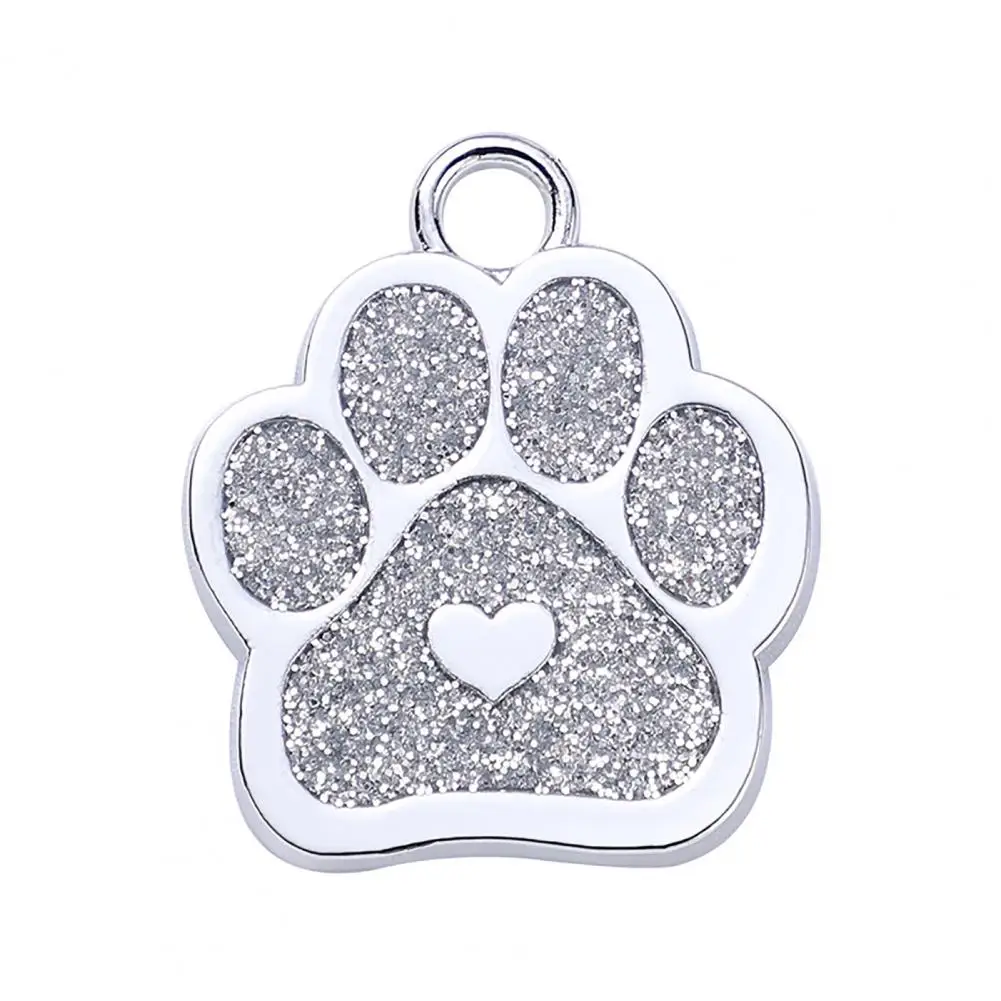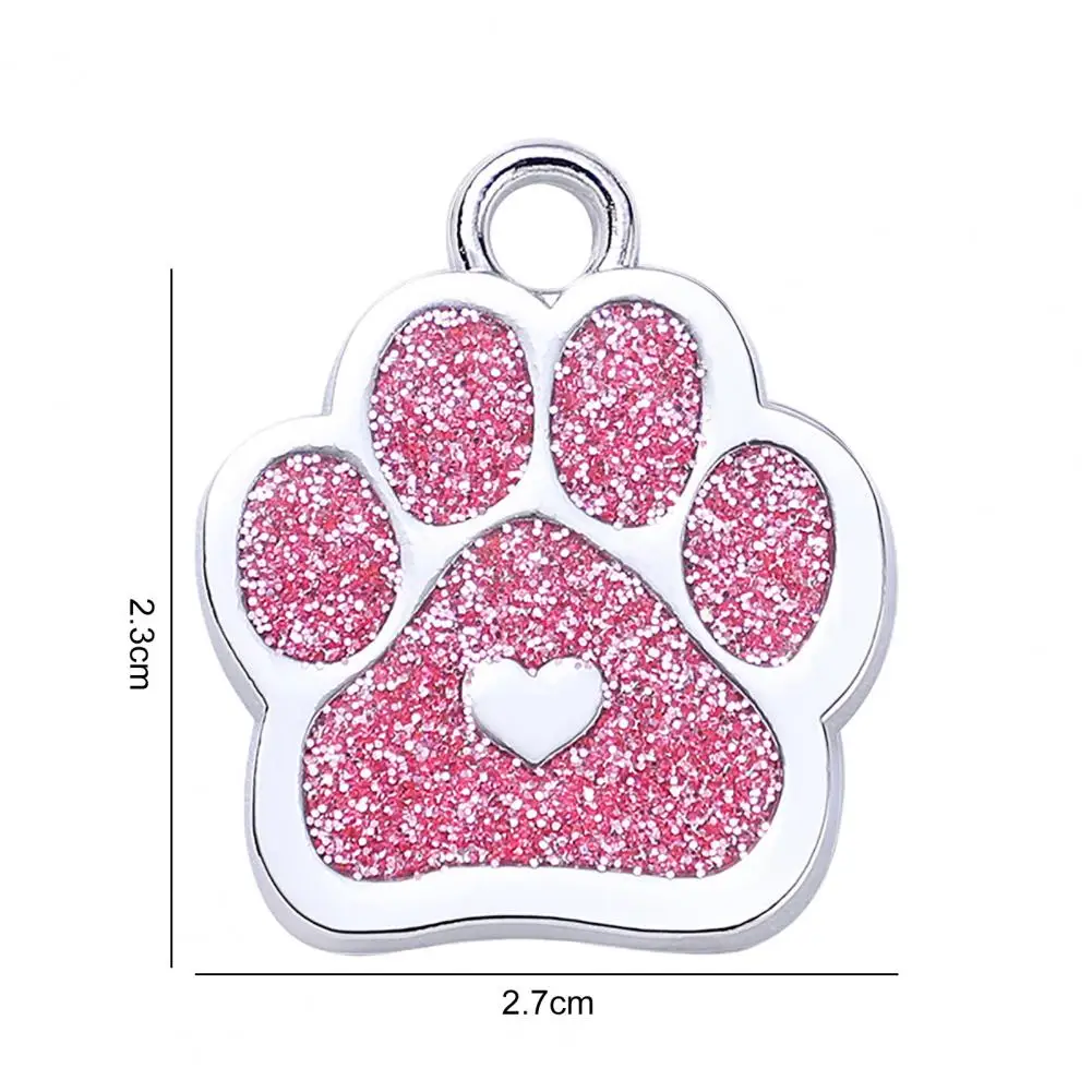 Etiqueta de perro brillante llamativa superficie lisa diseño de agujero colgante aleación forma de pata mascota Etiqueta de perro colgante uso diario