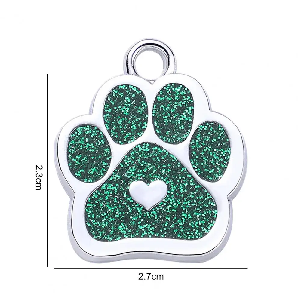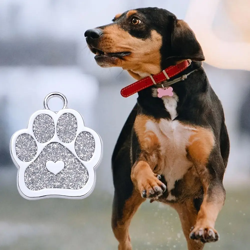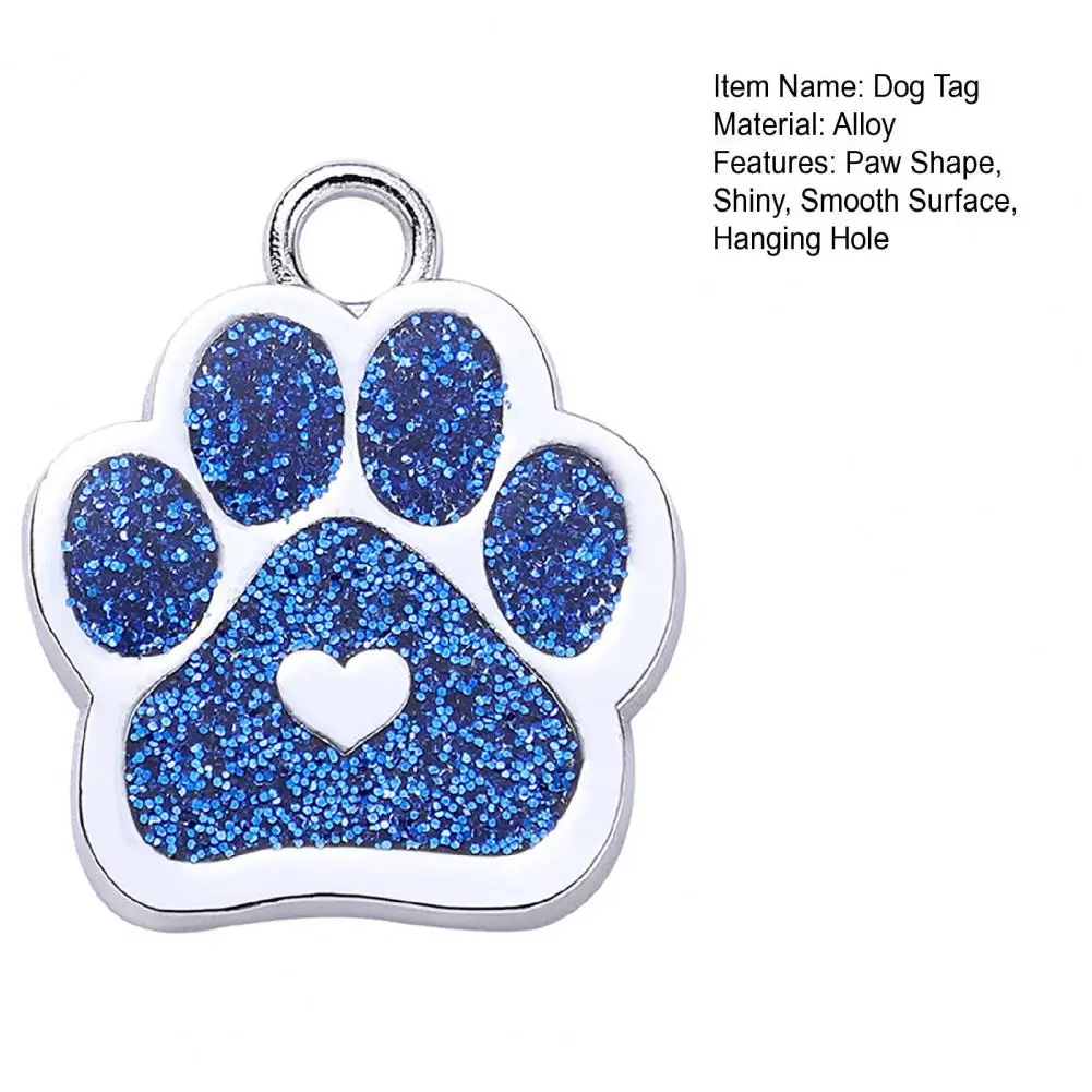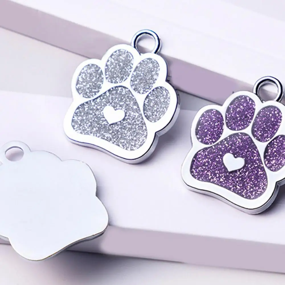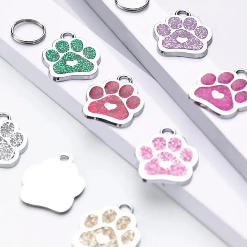 Etiqueta de perro brillante llamativa superficie lisa diseño de agujero colgante aleación forma de pata mascota Etiqueta de perro colgante uso diario