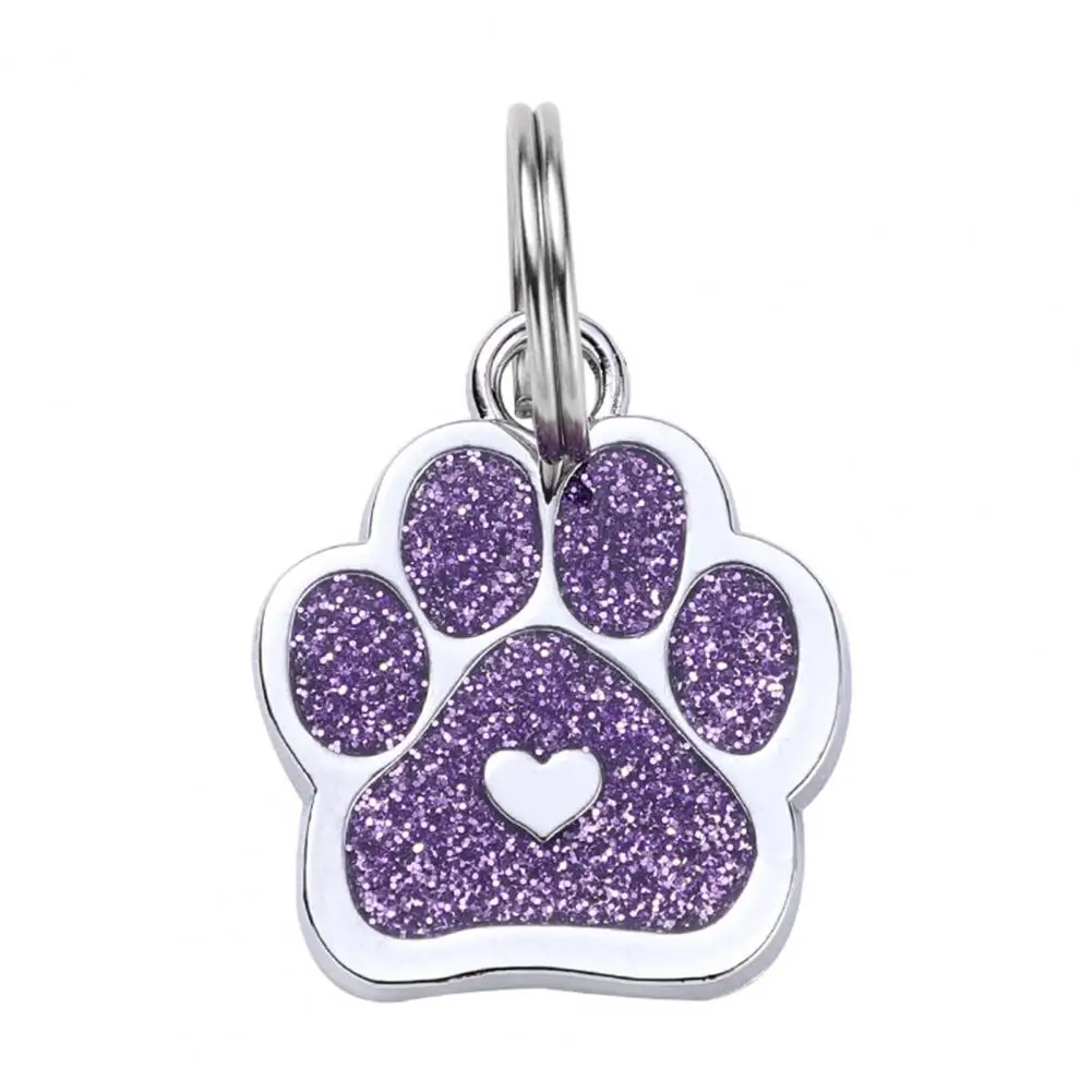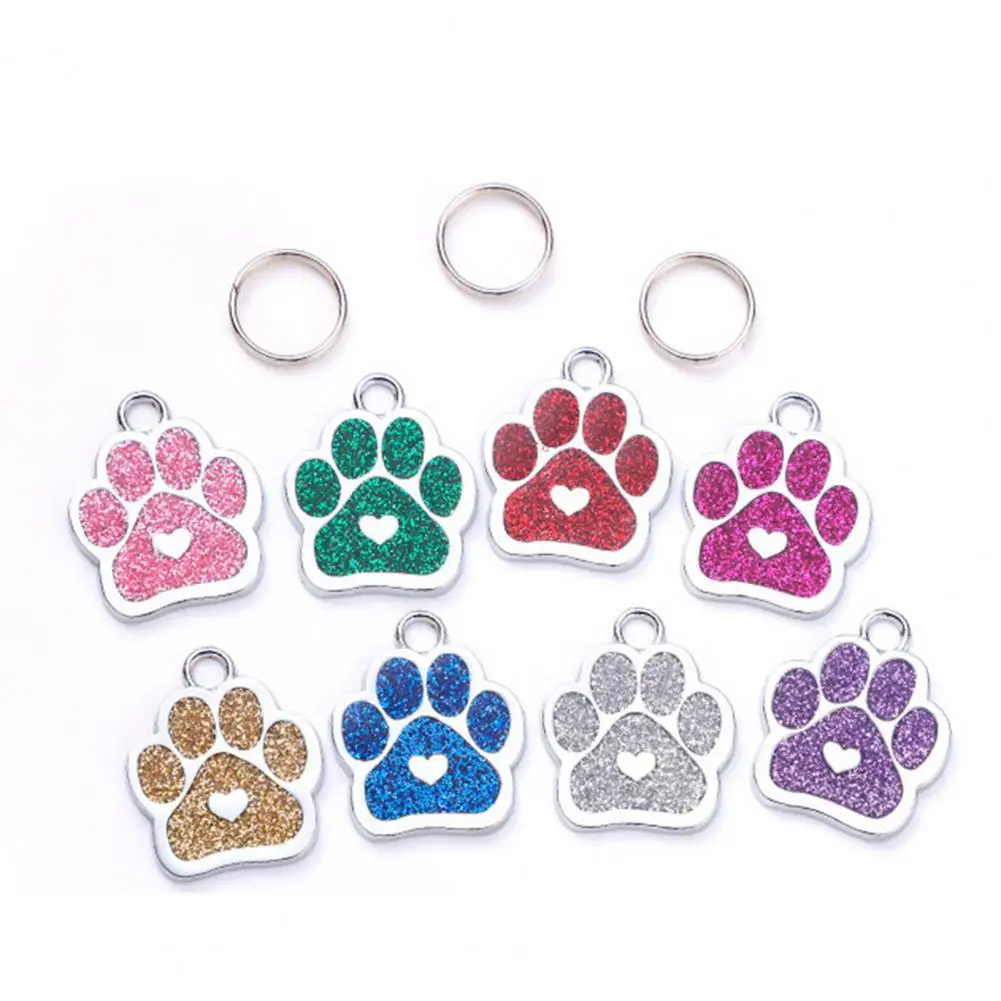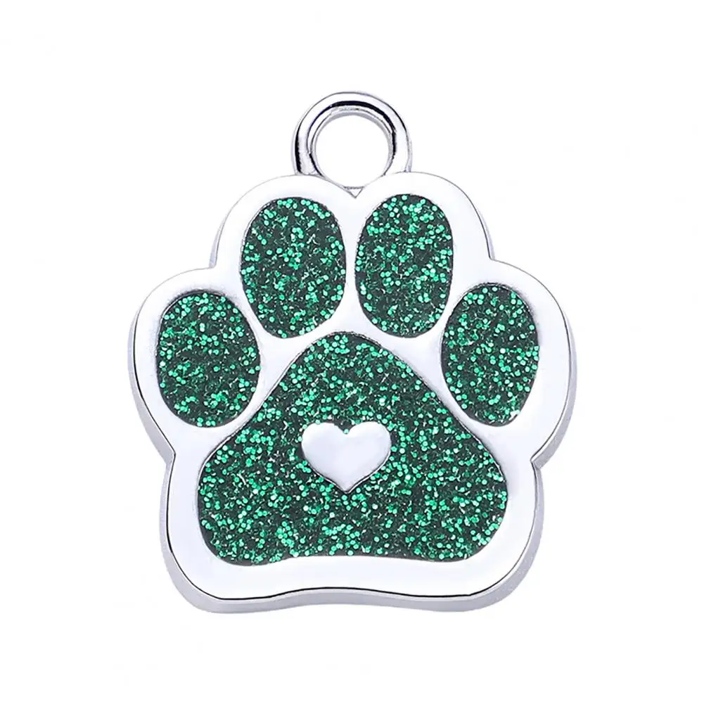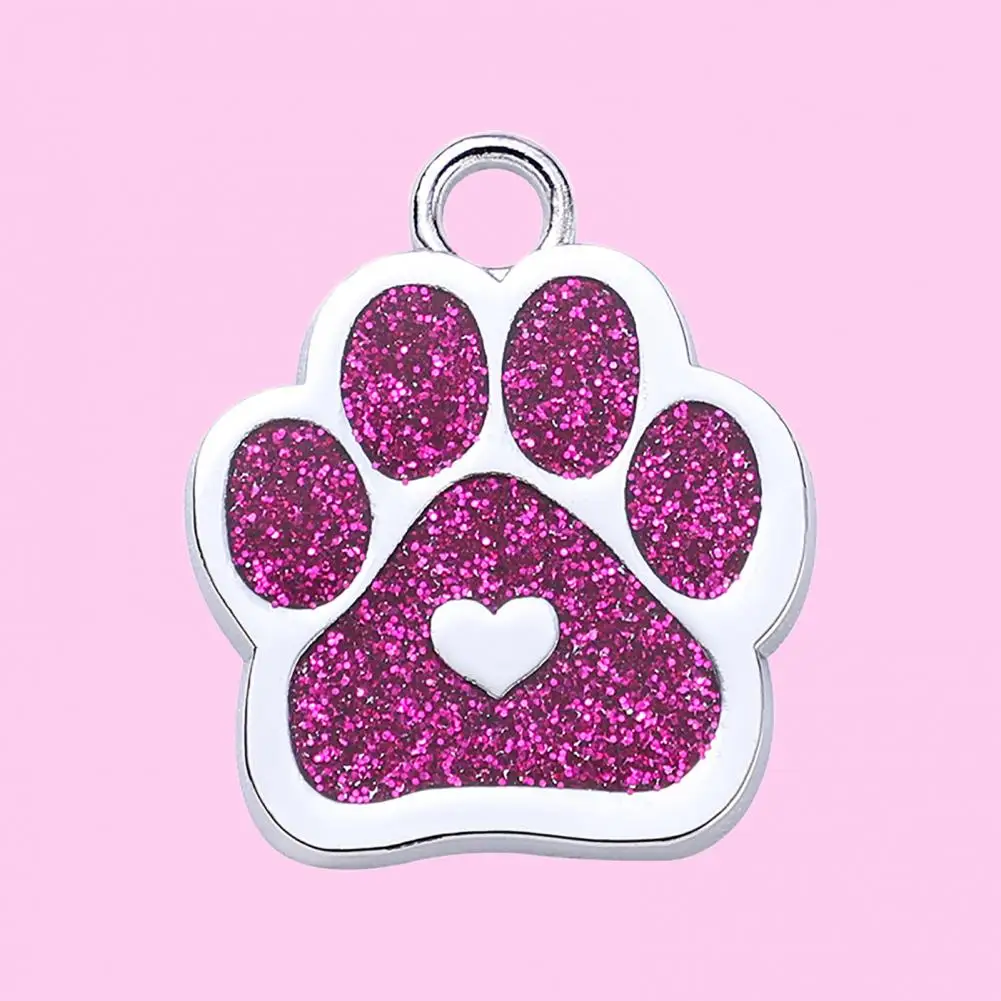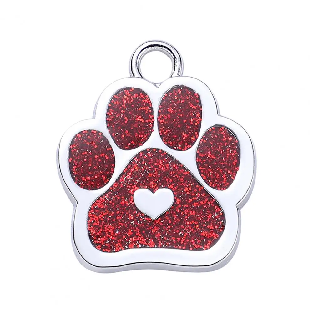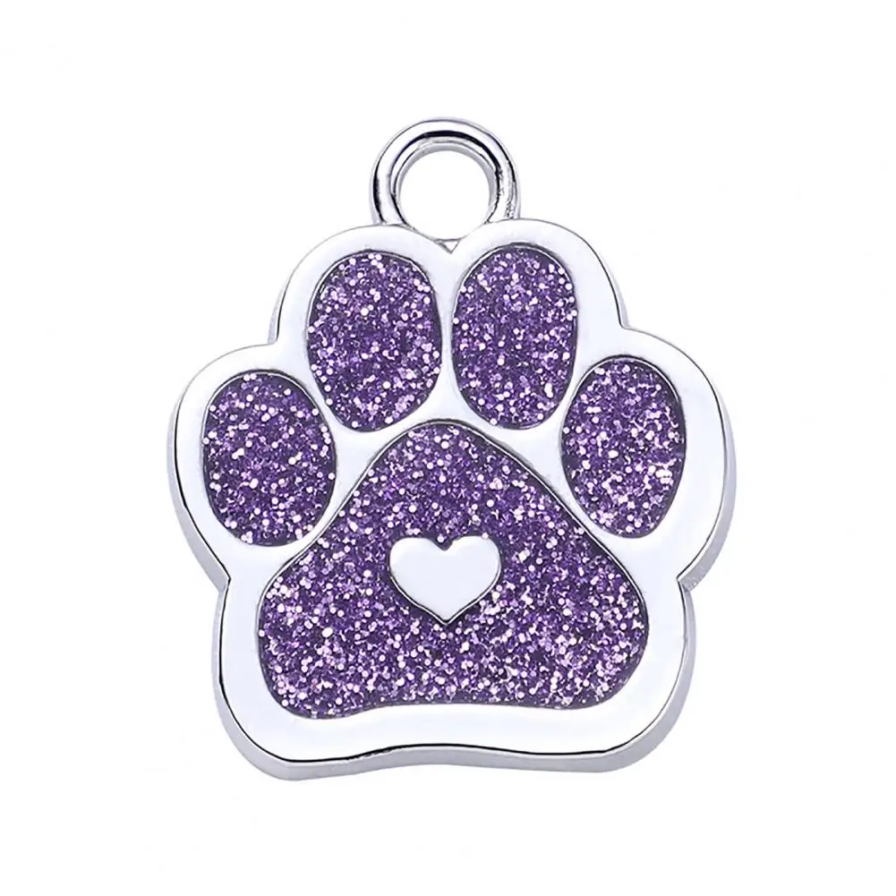 Etiqueta de perro brillante llamativa superficie lisa diseño de agujero colgante aleación forma de pata mascota Etiqueta de perro colgante uso diario