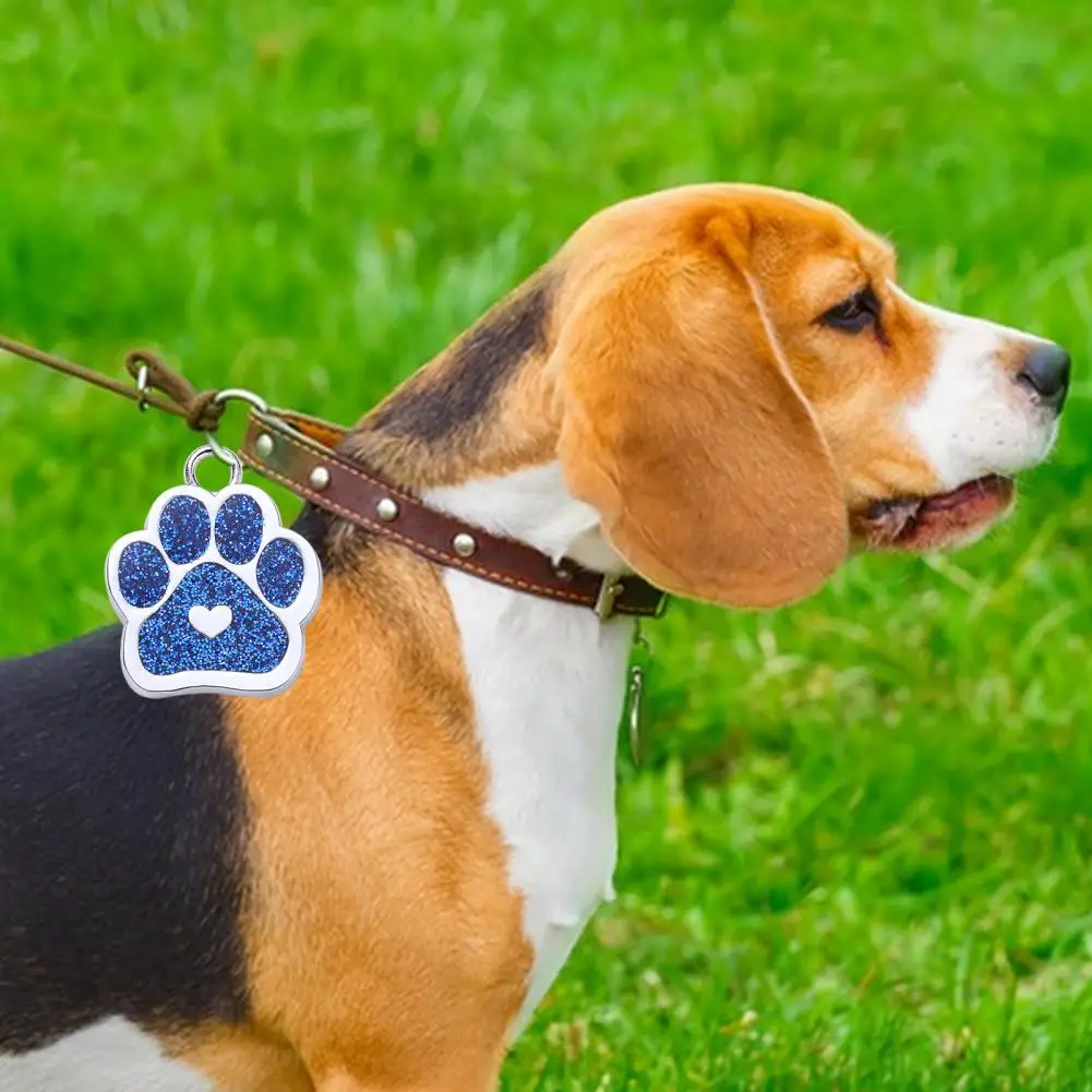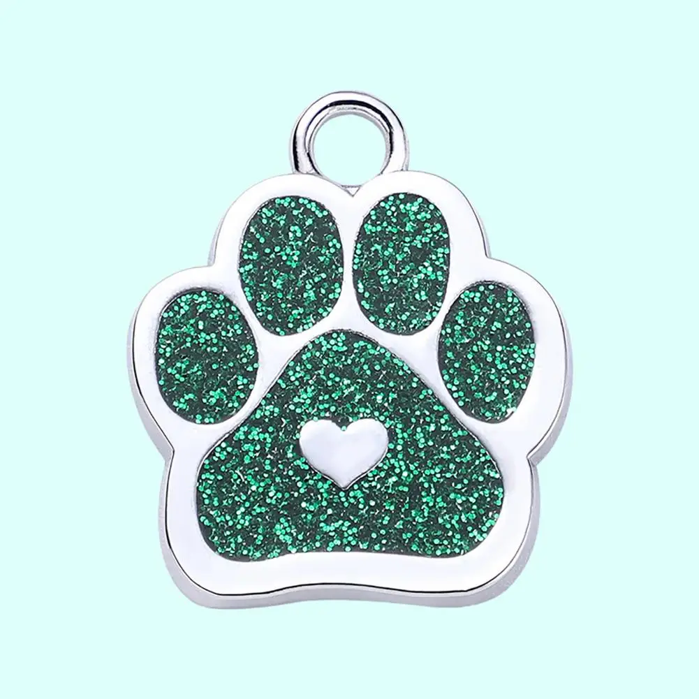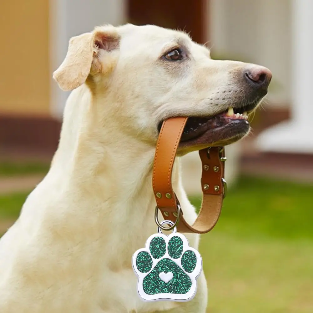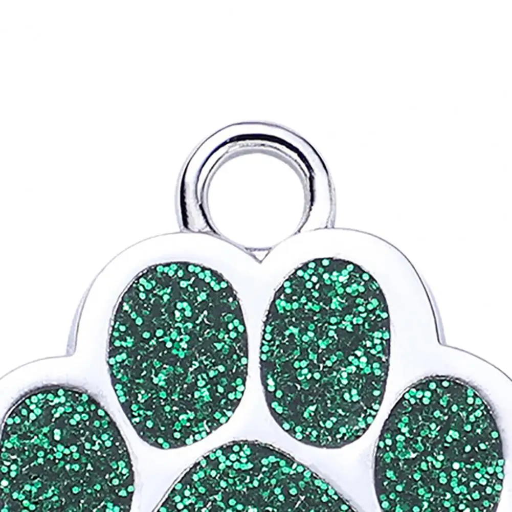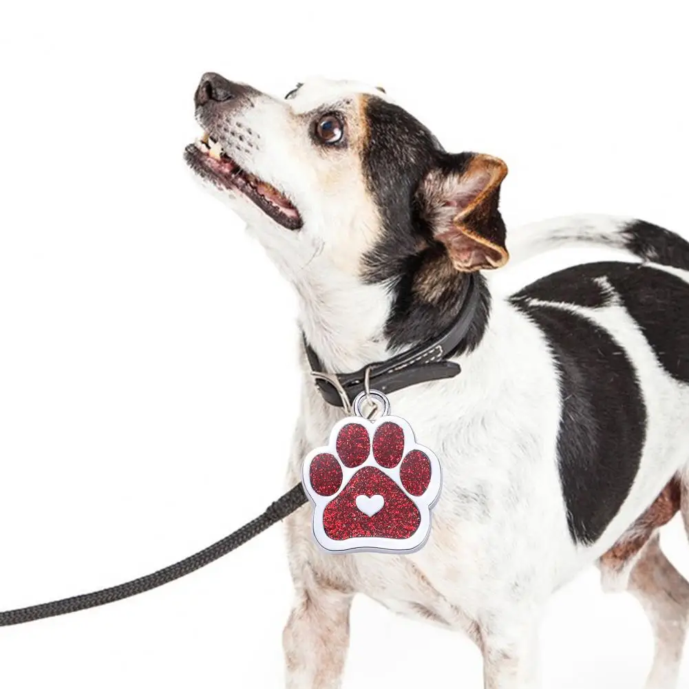 Etiqueta de perro brillante llamativa superficie lisa diseño de agujero colgante aleación forma de pata mascota Etiqueta de perro colgante uso diario