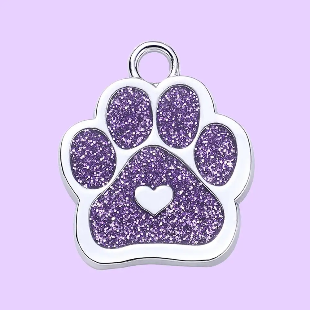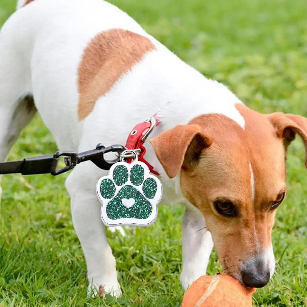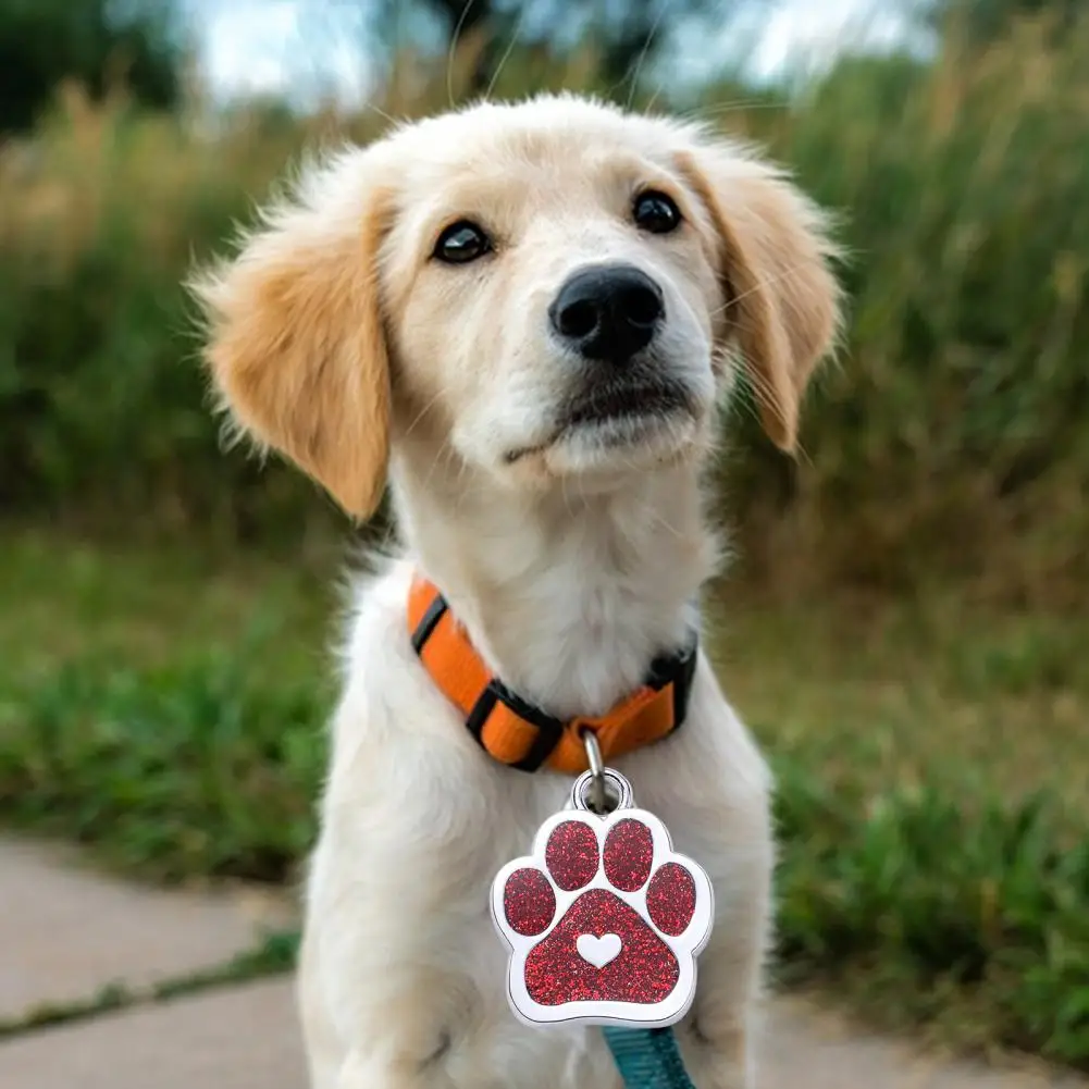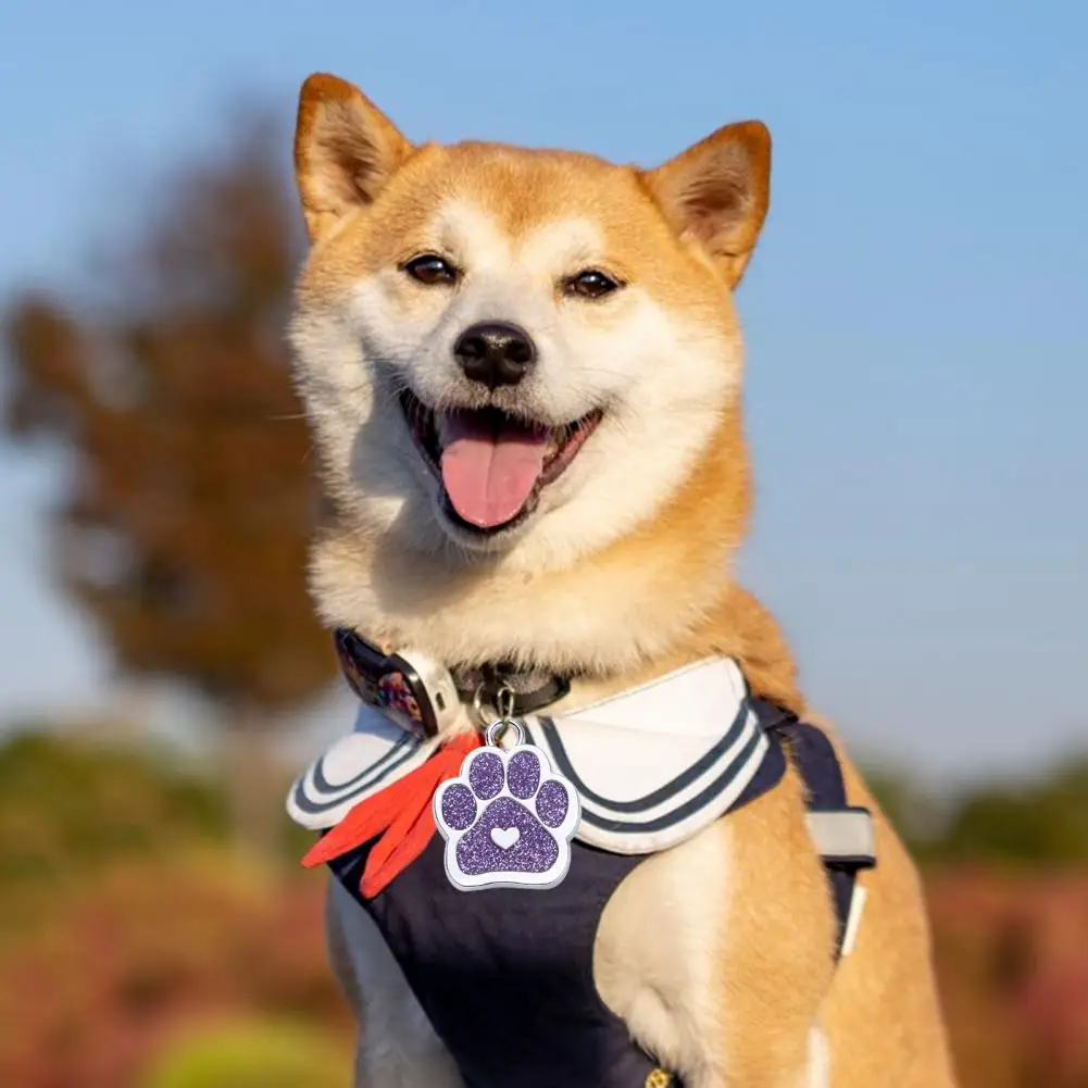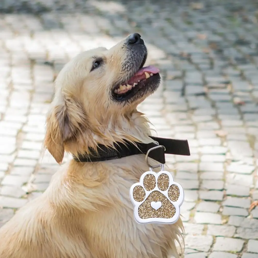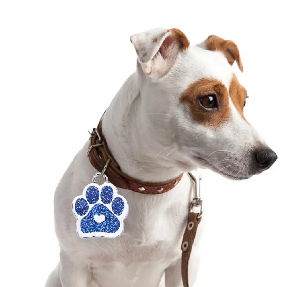 Etiqueta de perro brillante llamativa superficie lisa diseño de agujero colgante aleación forma de pata mascota Etiqueta de perro colgante uso diario