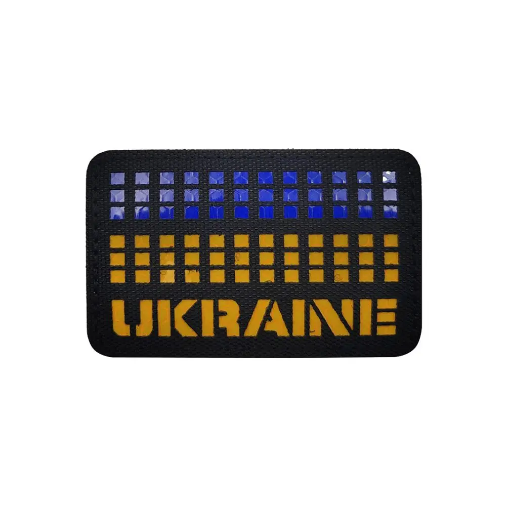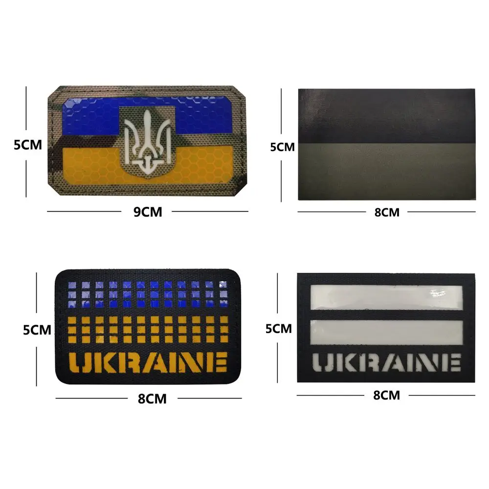 Nombre del producto: Parche IR con bandera de Ucrania, insignia para brazalete, pegatina, adorno de apliques, accesorio reflectante en la oscuridad, parches reflectantes tácticos