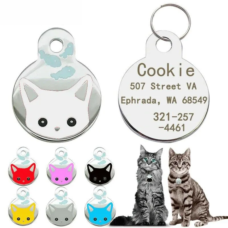 Etiqueta de gato personalizada, número de nombre personalizado antipérdida, etiquetas de identificación grabadas para gato, perro, mascota, etiqueta de identificación para Collar de perro y gato