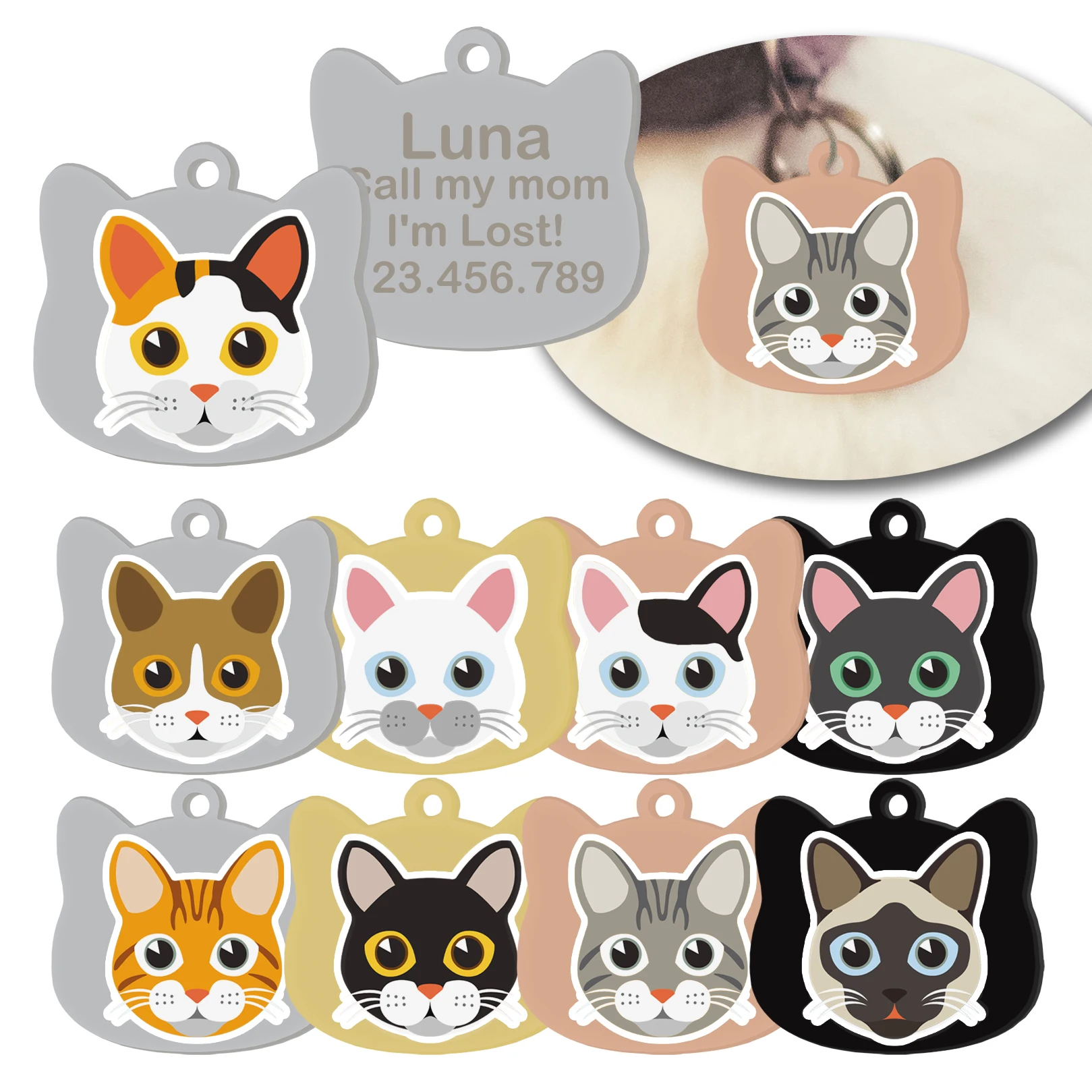 Texto personalizado:Cat No.3x (Elija uno de 30 a 30)+ Nombre+Número de teléfonoEjemplos:No.31 + Simba +1234567890(Si no quieres el número, sólo puedes dejar el nombre).¿Cómo personalizar?