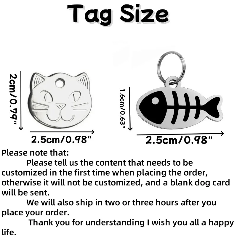 2.Infórmenos del contenido que debe personalizarse lo antes posible al realizar el pedido (puede informarnos en el cuadro de diálogo o dejar una nota en el pedido); de lo contrario, no será posible personalizarlo y se enviará una tarjeta de perro en blanco.También enviaremos dentro de dos o tres horas después de realizar su pedido.Gracias por su comprensión.Deseando a todos una vida feliz.