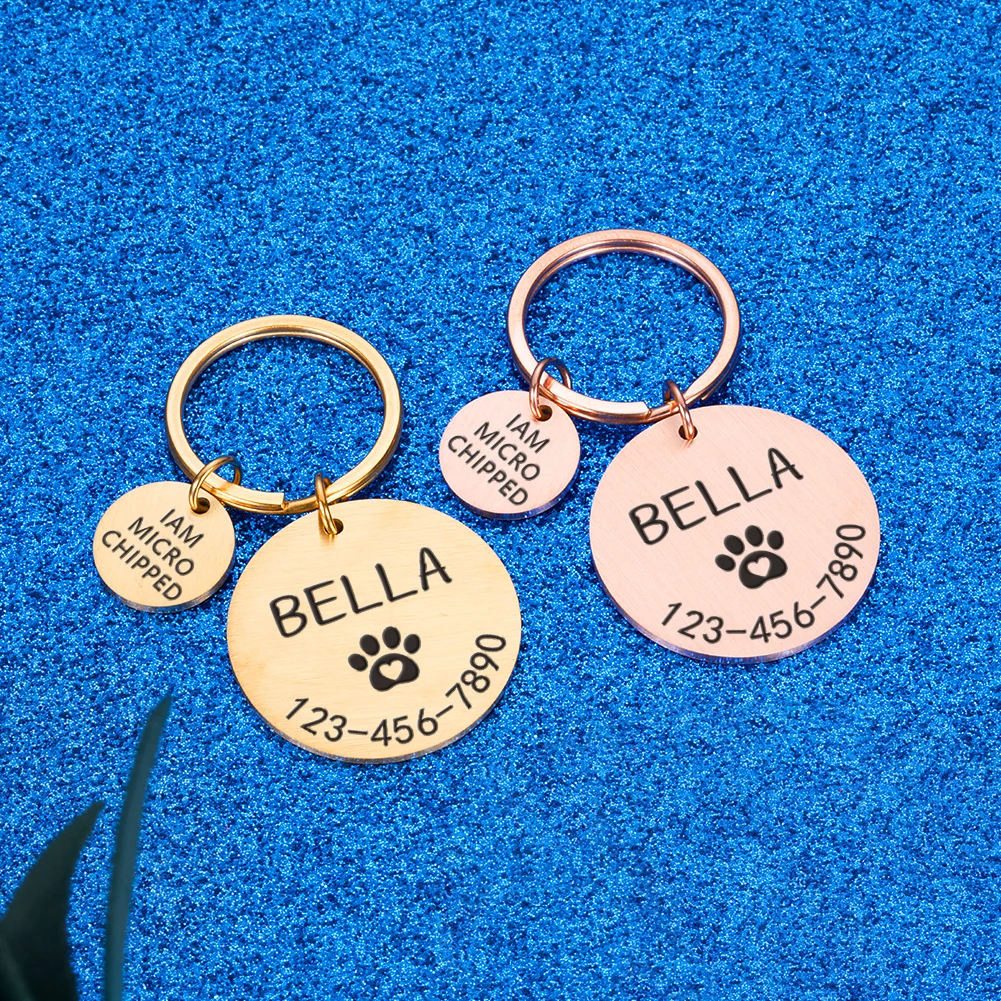 Etiqueta de identificación de mascota de perro grabada, nombre personalizado, teléfono, flor de hueso, nombre de identificación de mascota para gato, cachorro, etiqueta colgante, llavero, accesorios para mascotas