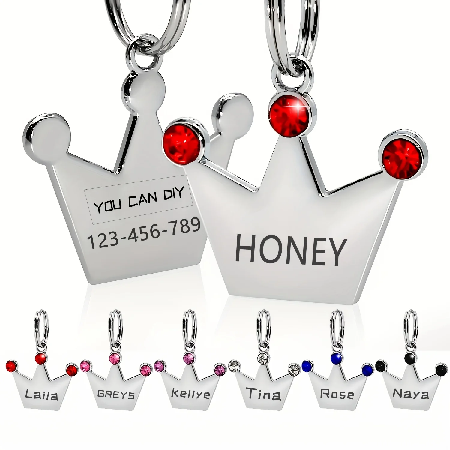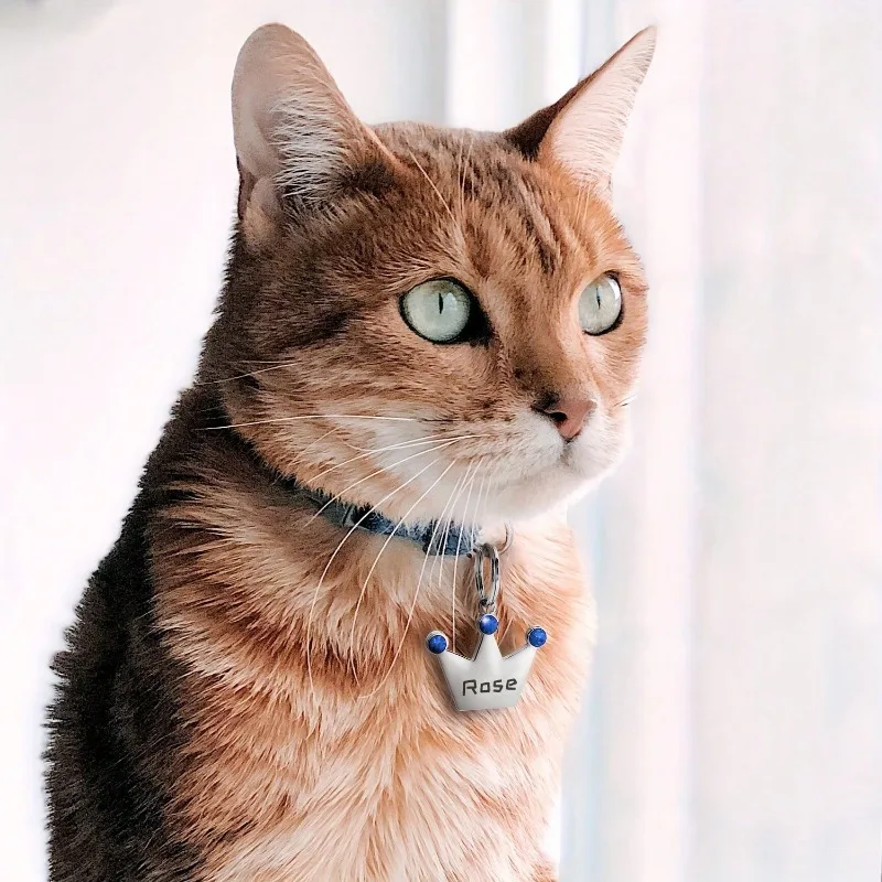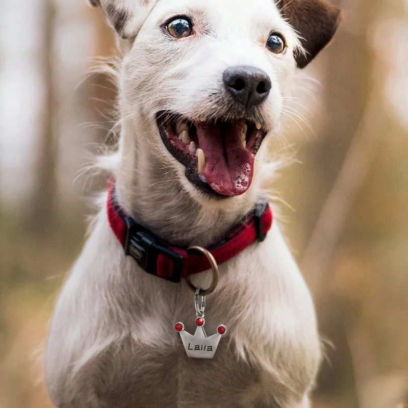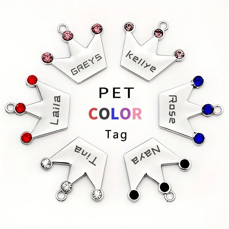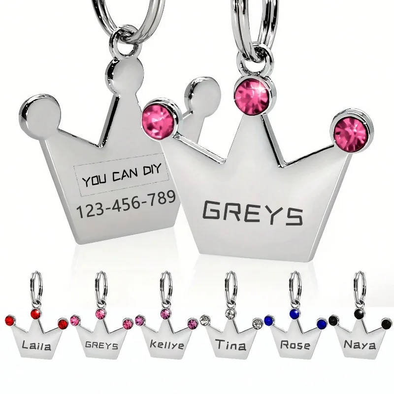Etiqueta de identificación de mascota personalizada de doble cara, collar con nombre de perro grabado gratuito personalizado, llavero, collar de corona, accesorio para cachorros