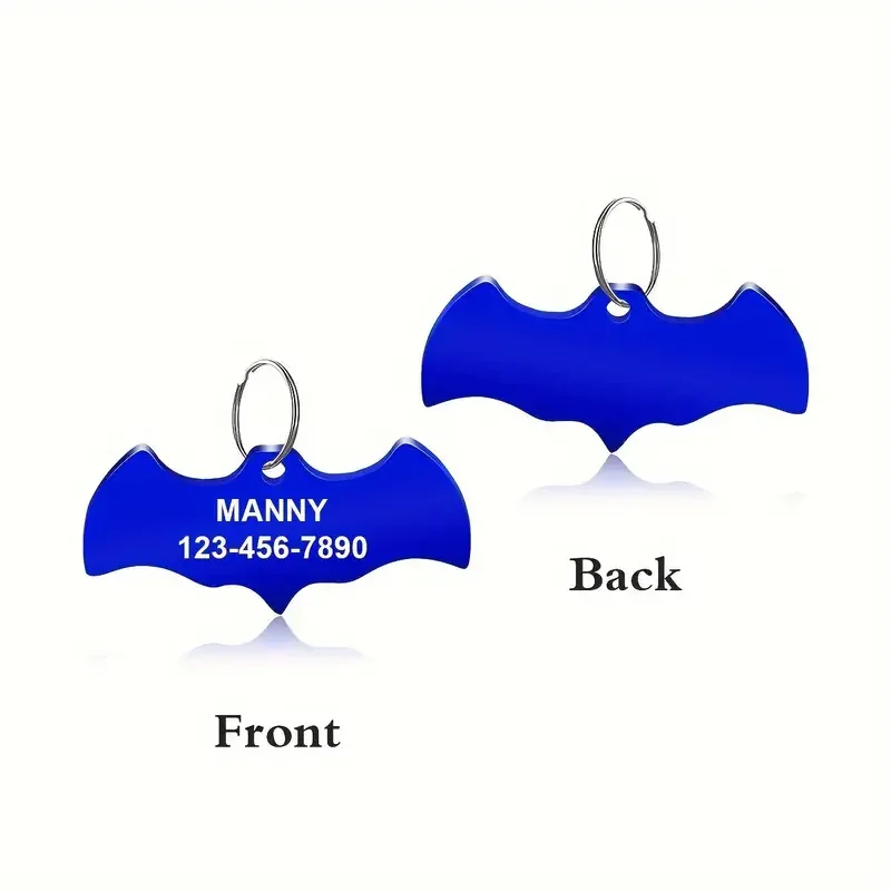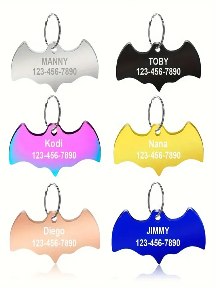 Etiqueta de Identificación Personalizada para Mascotas, Collar Antipérdida con Número de Nombre, Murciélago de Halloween, Accesorios para Cachorros