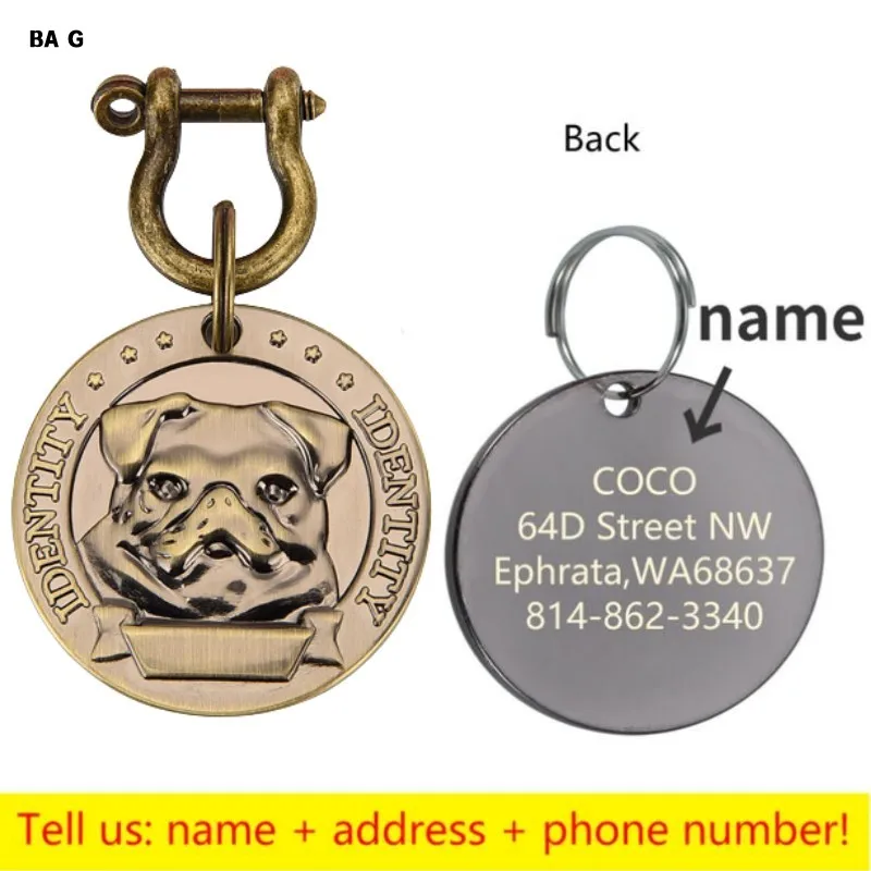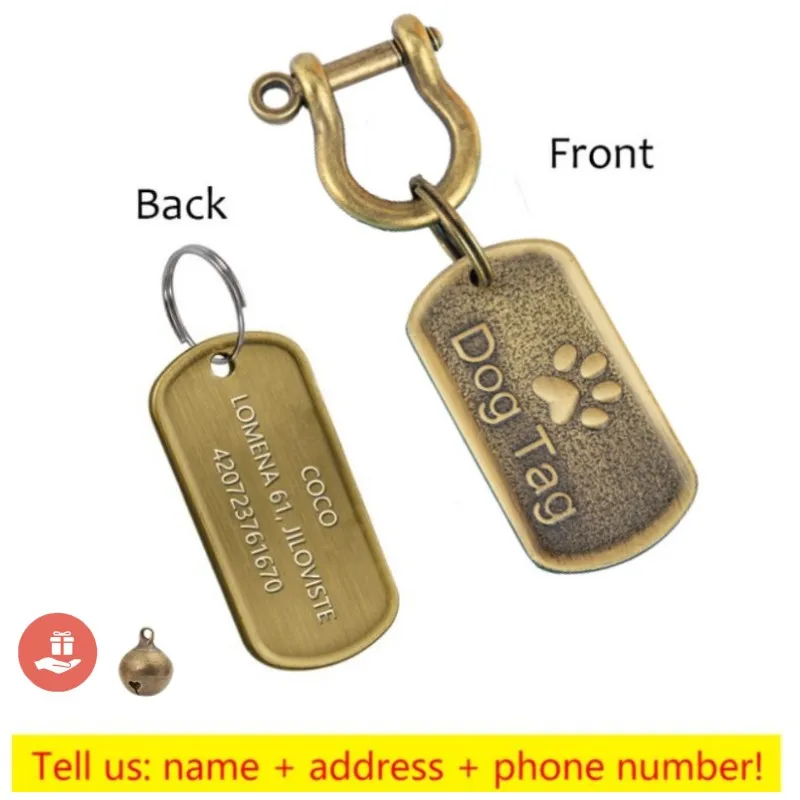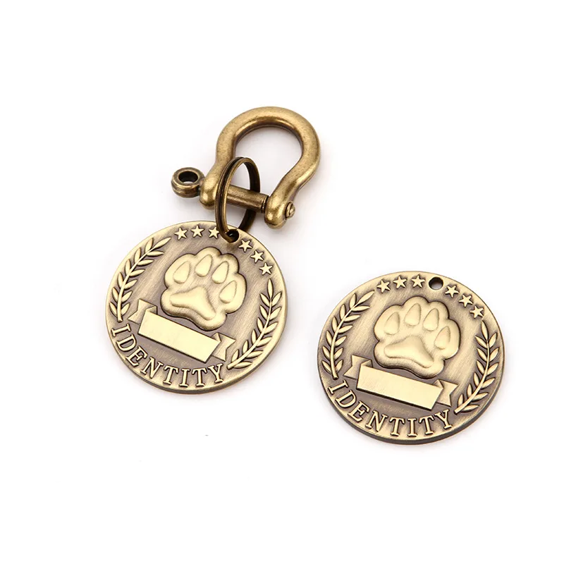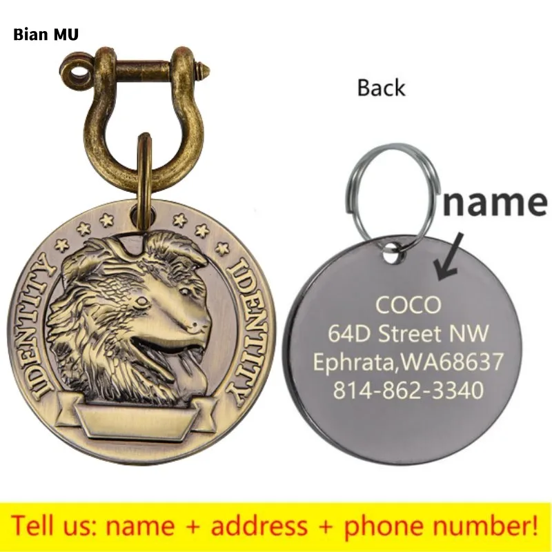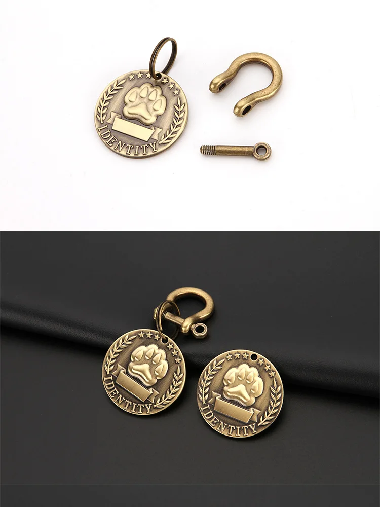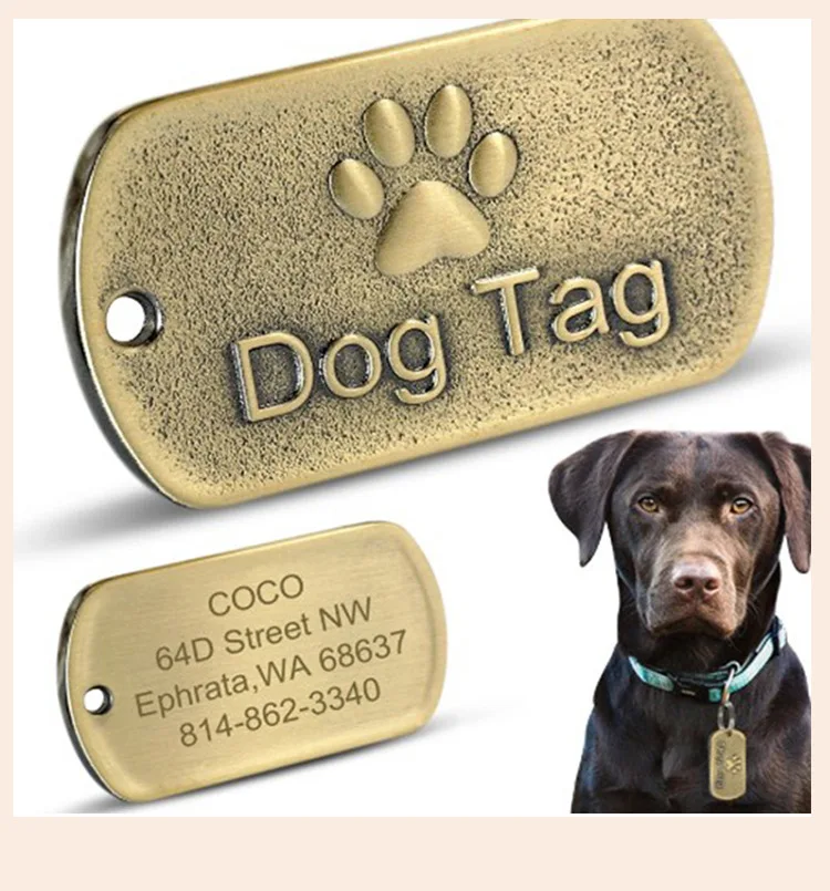 Etiqueta de identificación grabada personalizable para mascotas, etiquetas con placa de identificación de bronce para perros y gatos, número de dirección antipérdida personalizado, Collar para perros, colgante de identificación