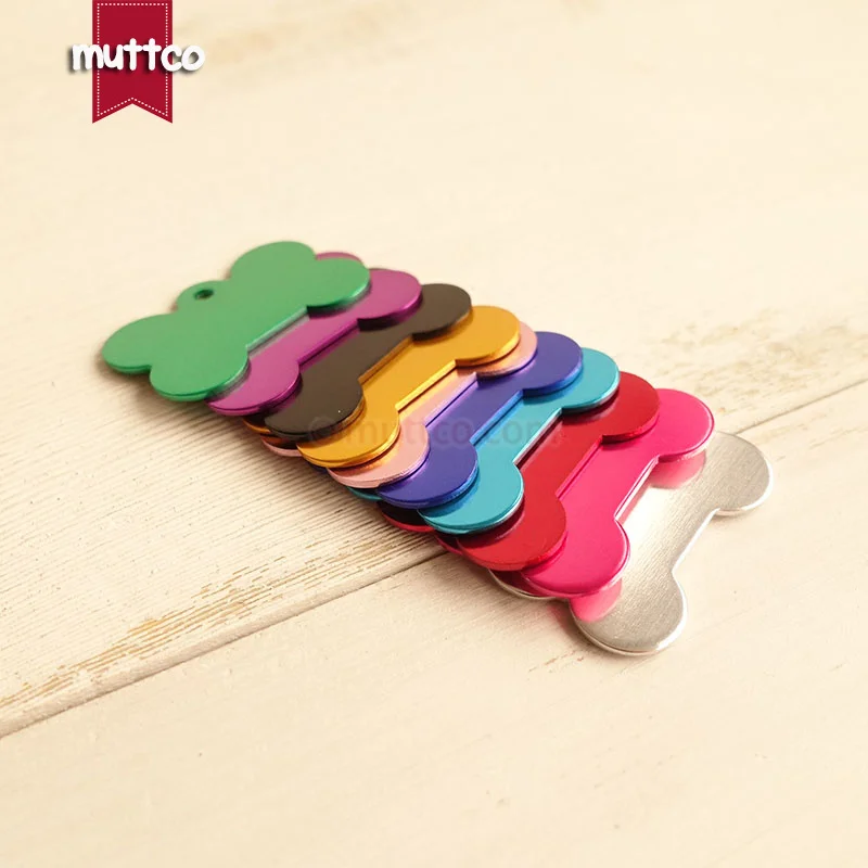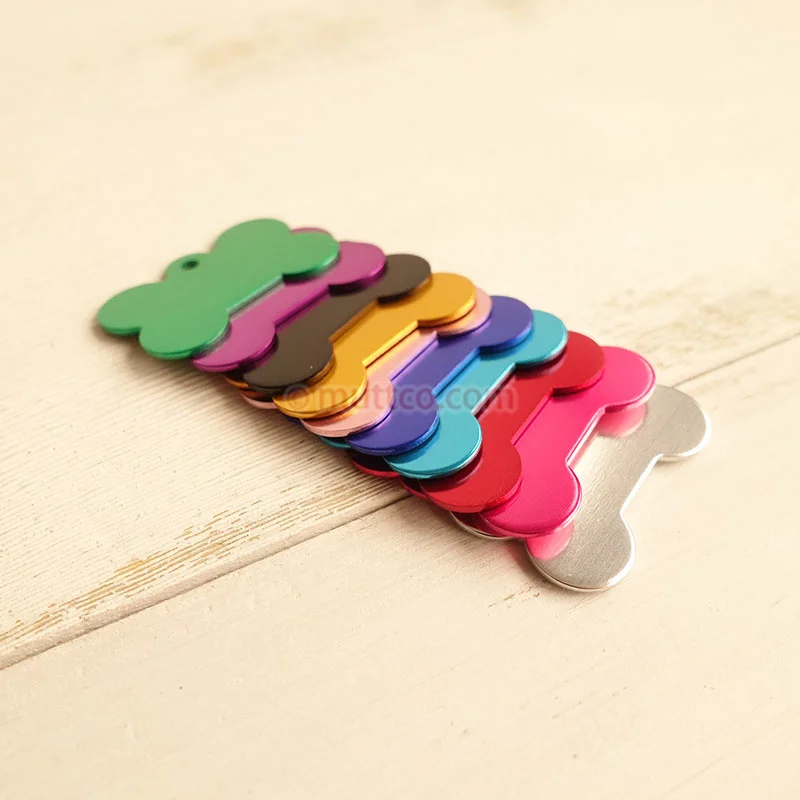 10 unids/lote, precio bajo, nombre desgaste de metal, etiqueta de identificación en blanco desgaste, número de teléfono, hueso afilado, etiqueta de identificación de perro, 10 colores DIT-025