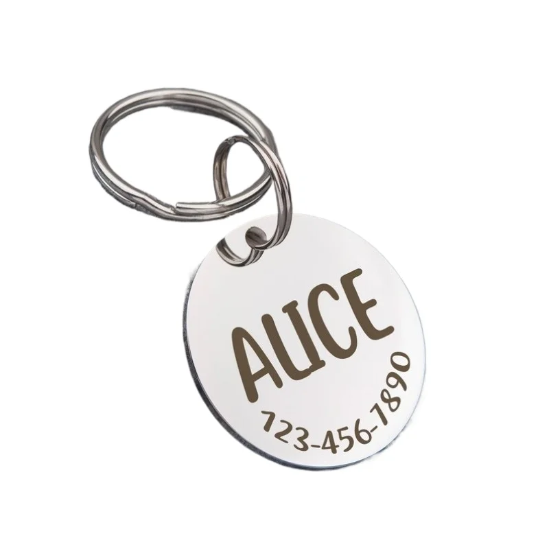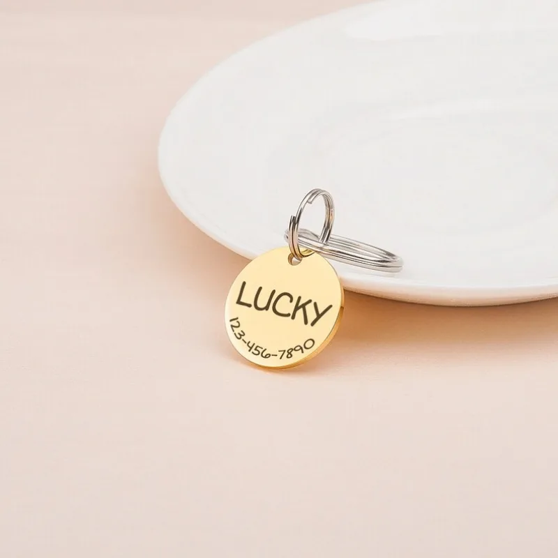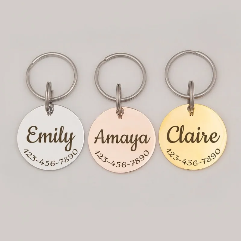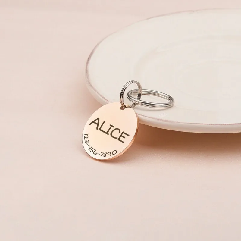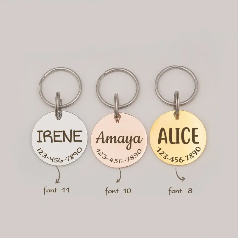 Etiqueta de identificación personalizada para perros y gatos, dirección con nombre y número de teléfono grabado en la parte delantera y trasera para collar personalizado de mascotas, abalorio de Metal antipérdida