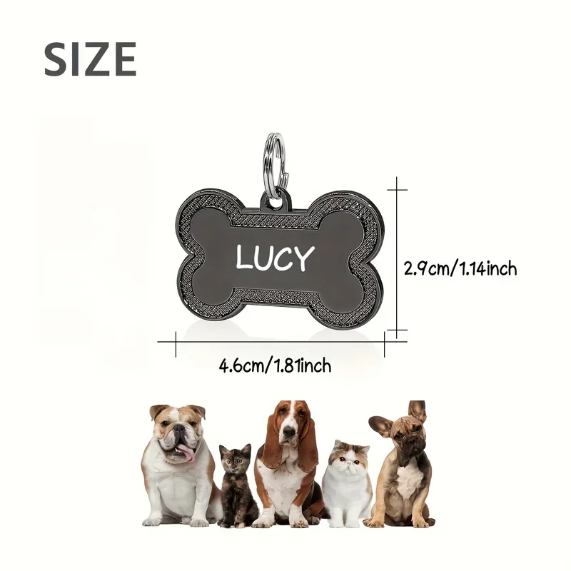 Etiqueta de identificación de perro mascota personalizada, etiqueta de teléfono con nombre de perro tallado personalizado, antipérdida, colgante de aleación de Zinc, adecuado para gatos y perros, 1 ud. - imagen 4
