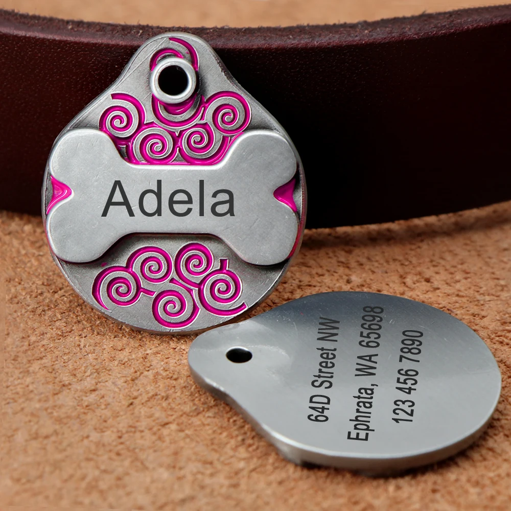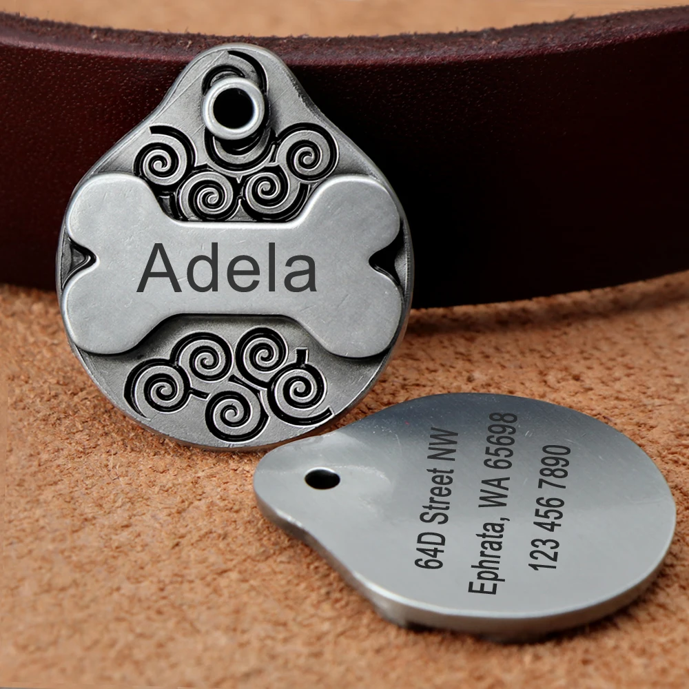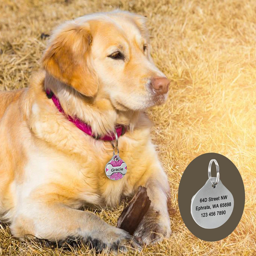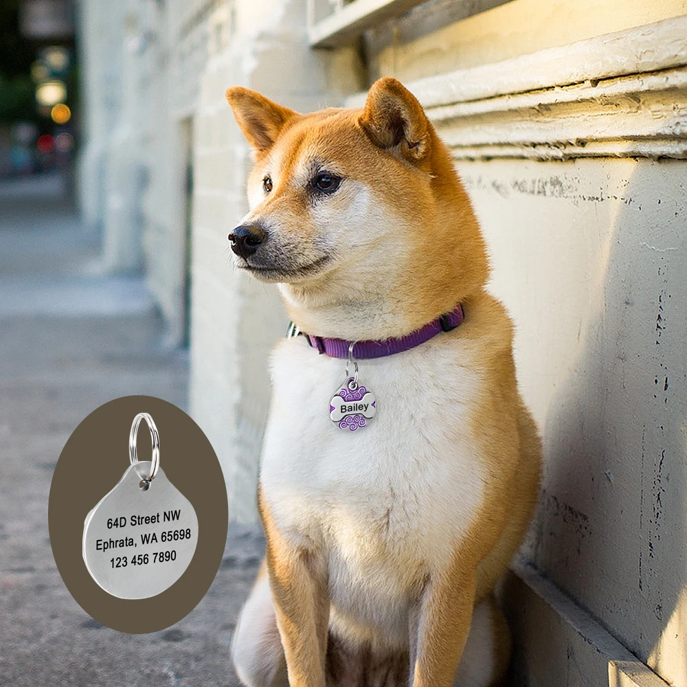 Personalized Dog ID Tag Custom Pet Nameplate Fashion Dogs Tags Pendent Free Engraved Name Address Phone No. for dogs Collar Pug