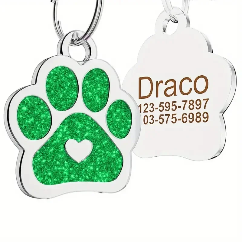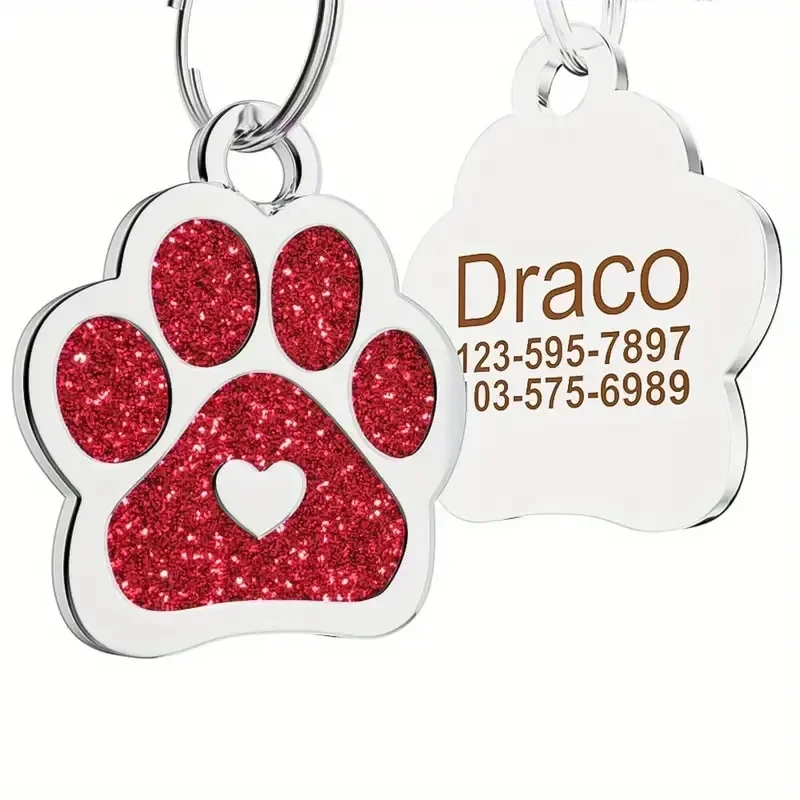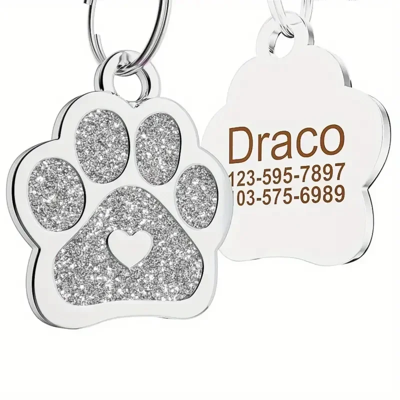 Etiqueta de identificación de perro personalizada con purpurina personalizada, etiqueta de nombre con forma de corazón y pata, accesorios para decoración de Collar, 1 ud.