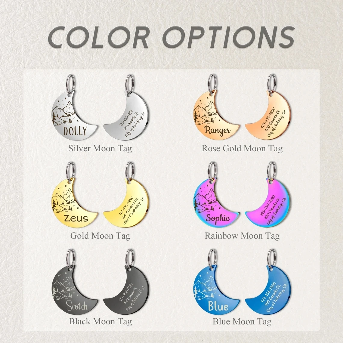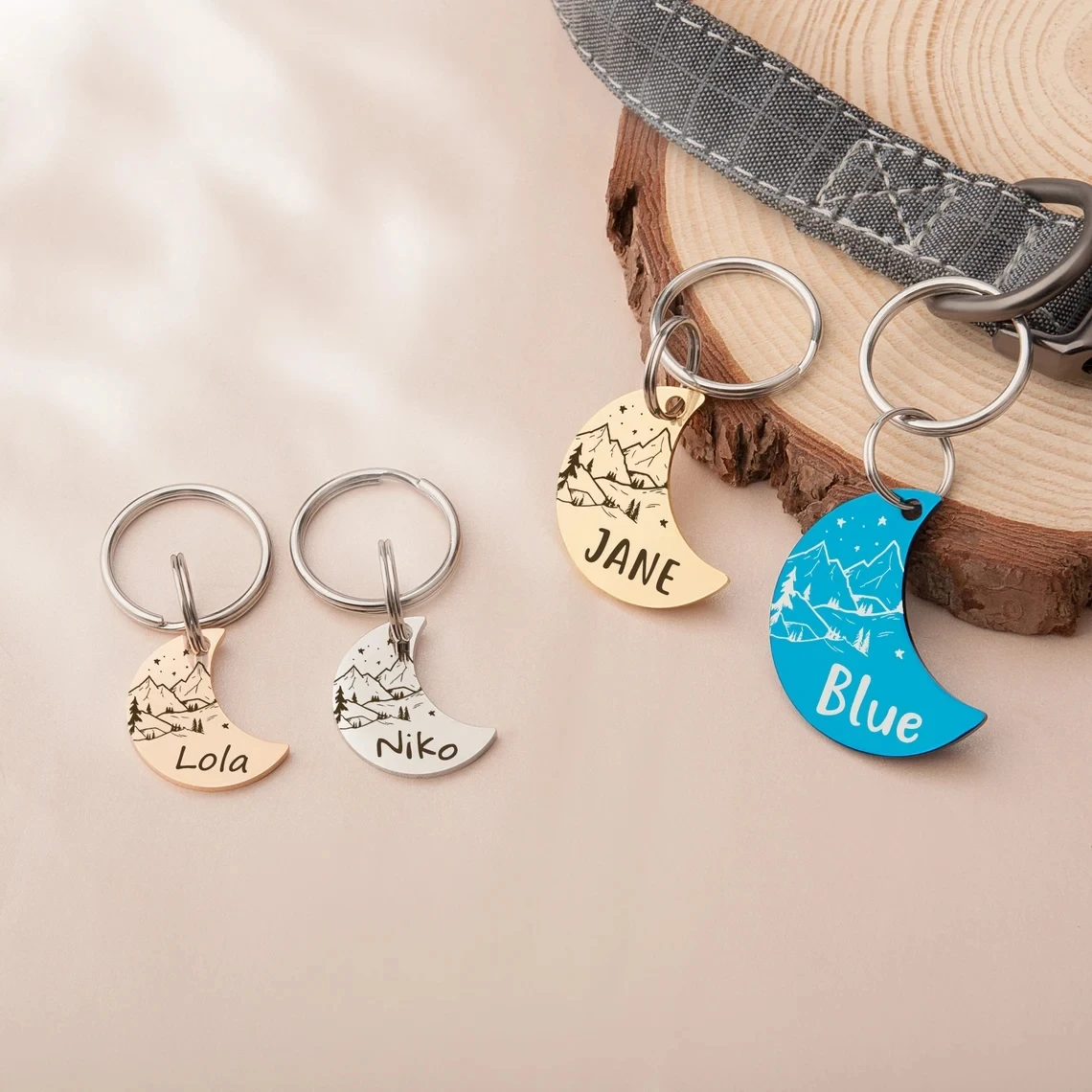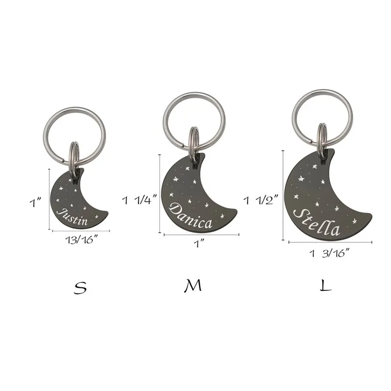 Etiqueta de identificación personalizada para perros y gatos, accesorios de placas de Collar para mascotas antipérdida, dijes colgantes de placa de identificación de luna de colores grabables