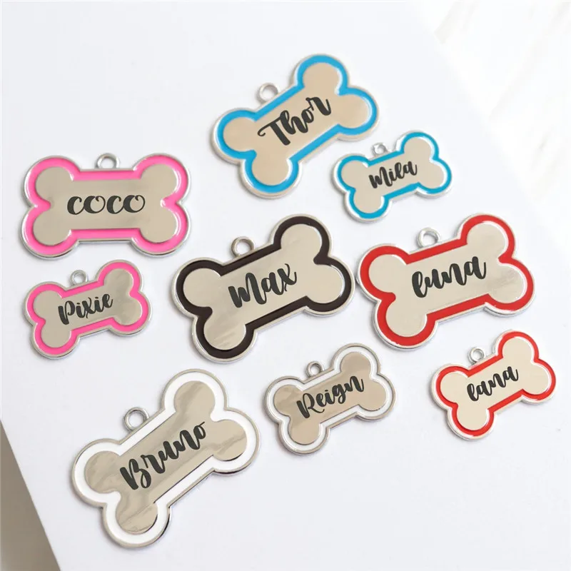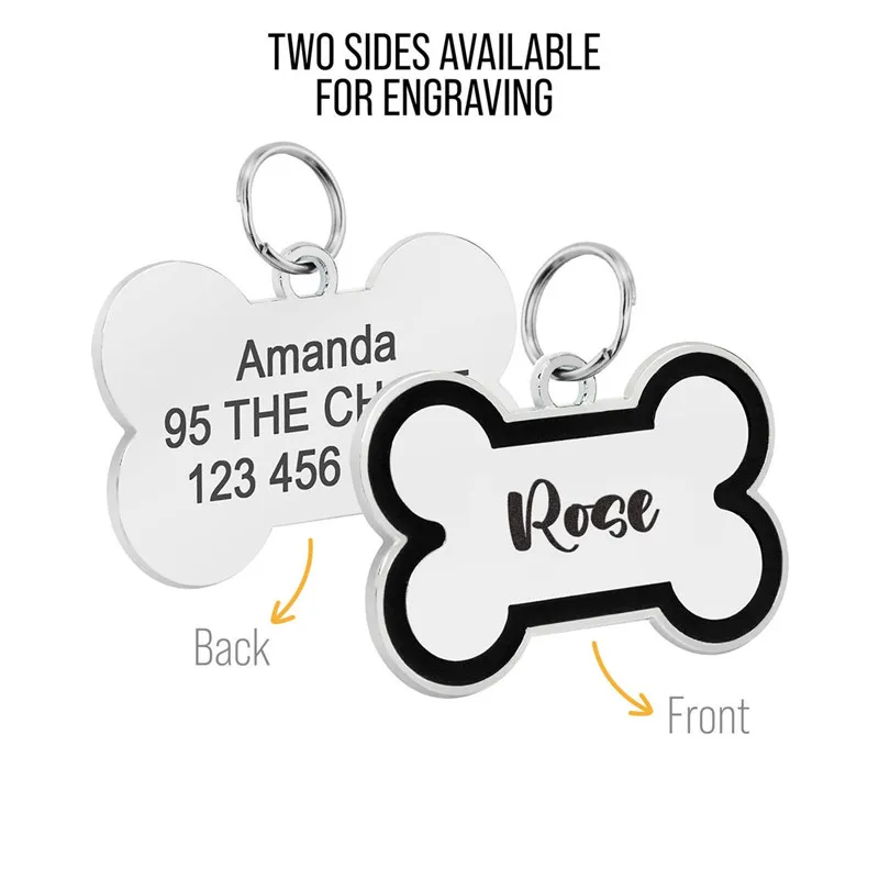 Etiqueta de identificación personalizada para mascotas, Collar de hueso de acero inoxidable para perros, etiquetas de identificación de dirección para perros y gatos con grabado gratuito, etiqueta personalizada