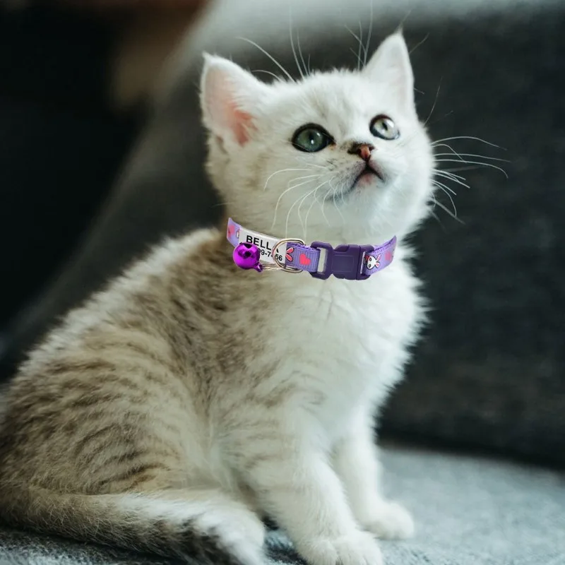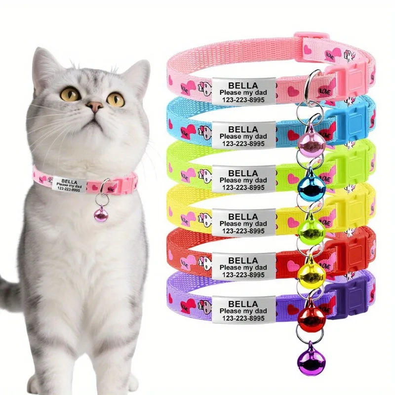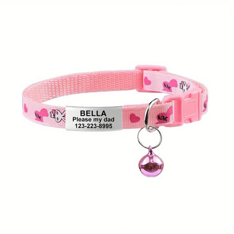 Etiqueta de identificación personalizada con nombre de mascota, Collar para perro y gato, Collar ajustable con estampado de conejo y campana, accesorios para cachorros y gatitos, suministros