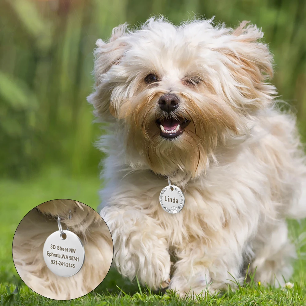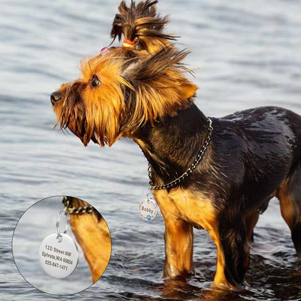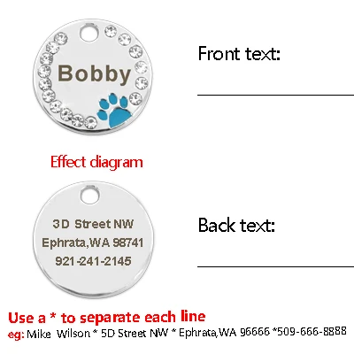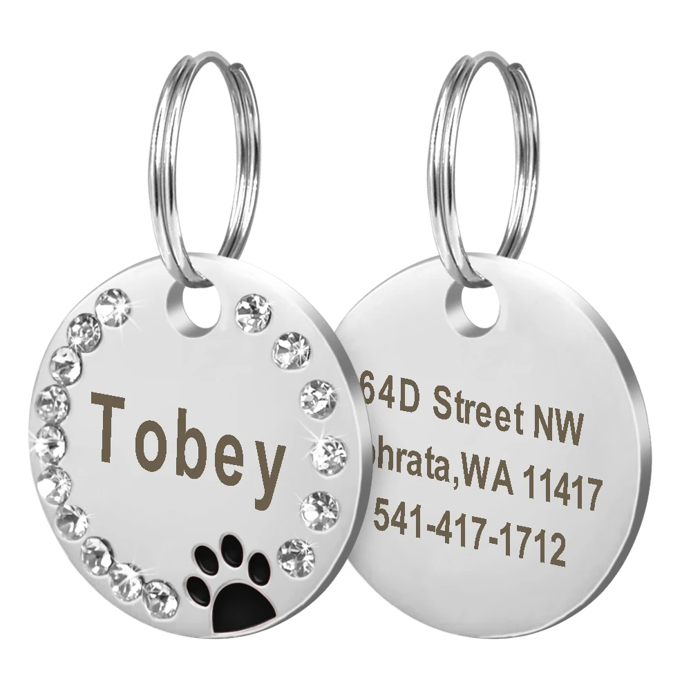 Nombre: etiqueta de identificación de perro, etiquetas de Metal de cristal grabadas personalizadas para mascotas, accesorios para Collar de perro con diamantes de imitación pequeños y grandes, placa de etiqueta de nombre personalizada